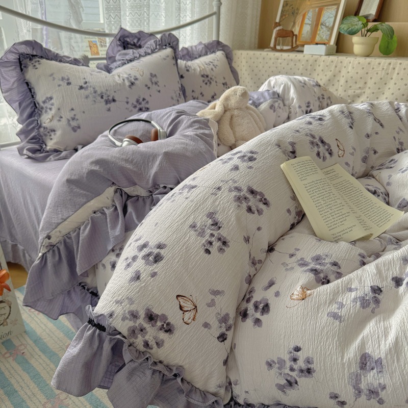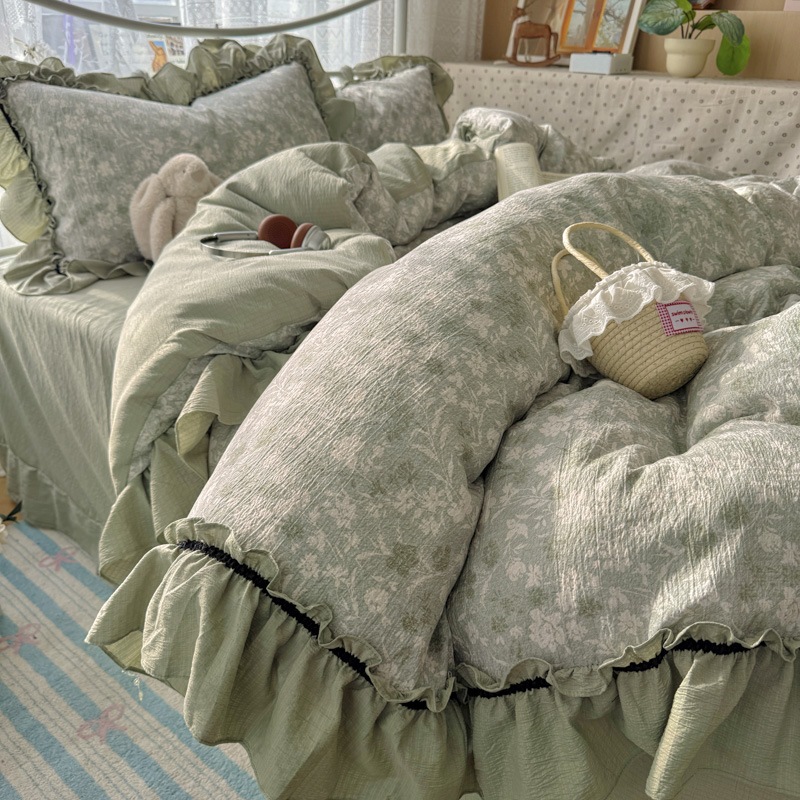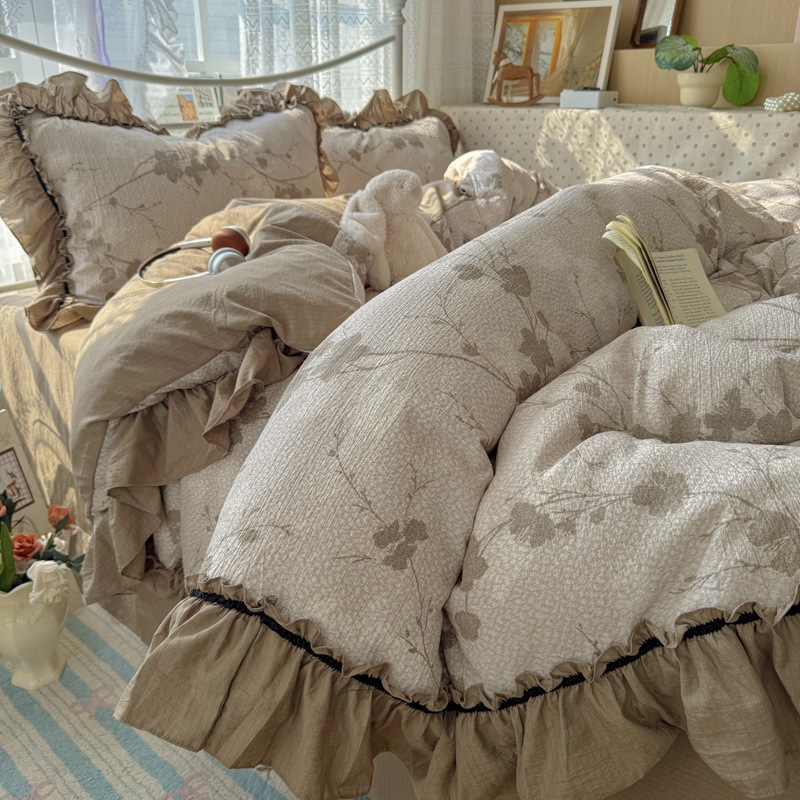 フレンチレース 純綿 4点セット レトロ田園風 カバー コットン100% プリンセス風 シーツ 3点セット