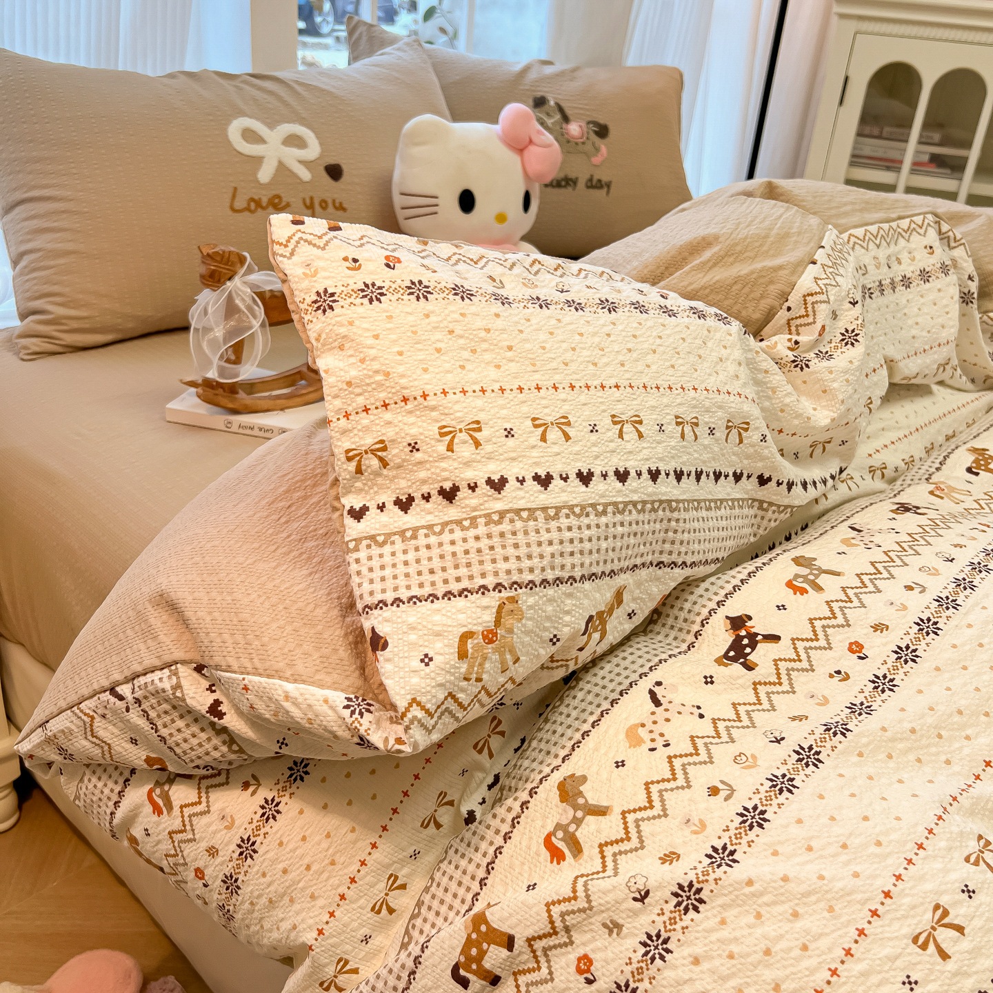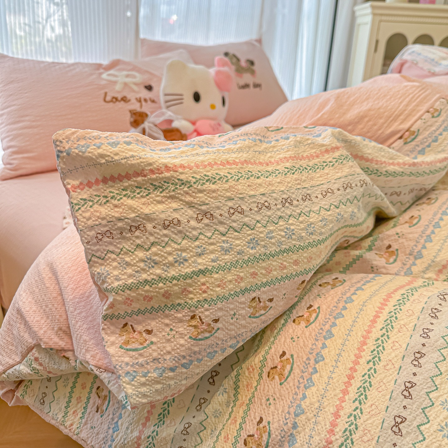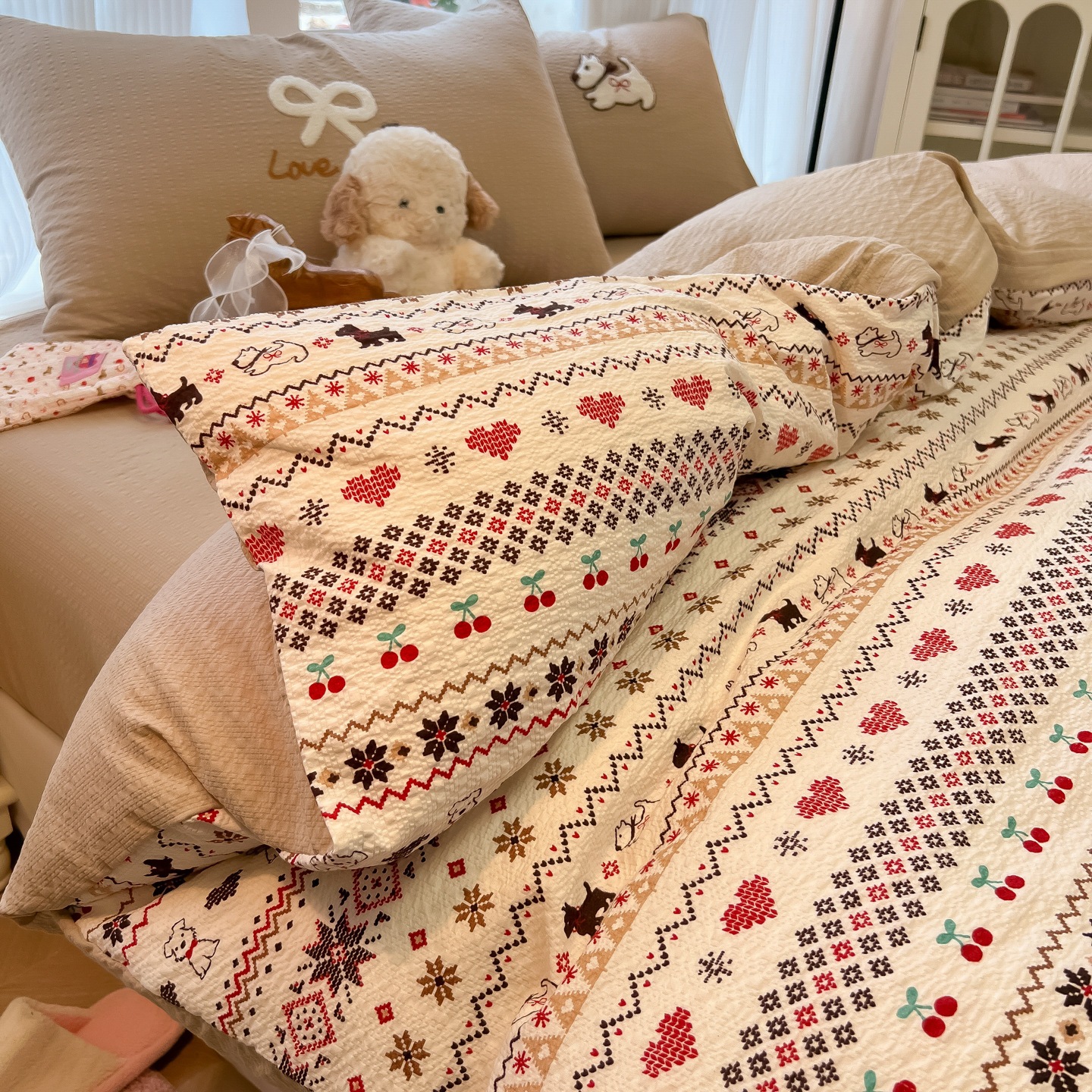 A類 コットン100% カートゥーン タオル刺繍 4点セット かわいい 小清新 フェアアイル 純綿 カバー 寮 3点セット