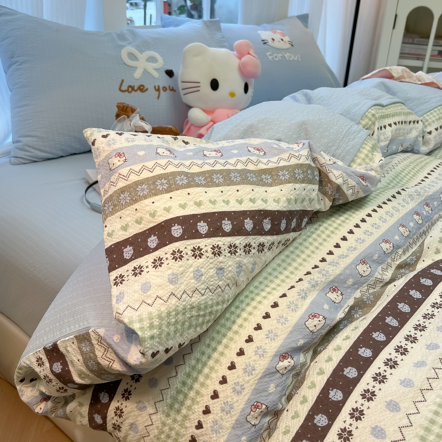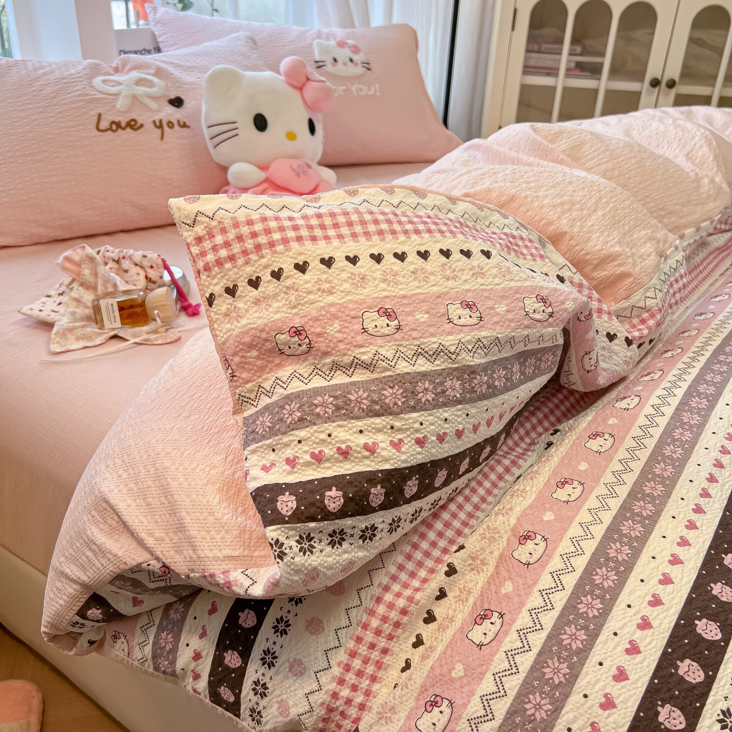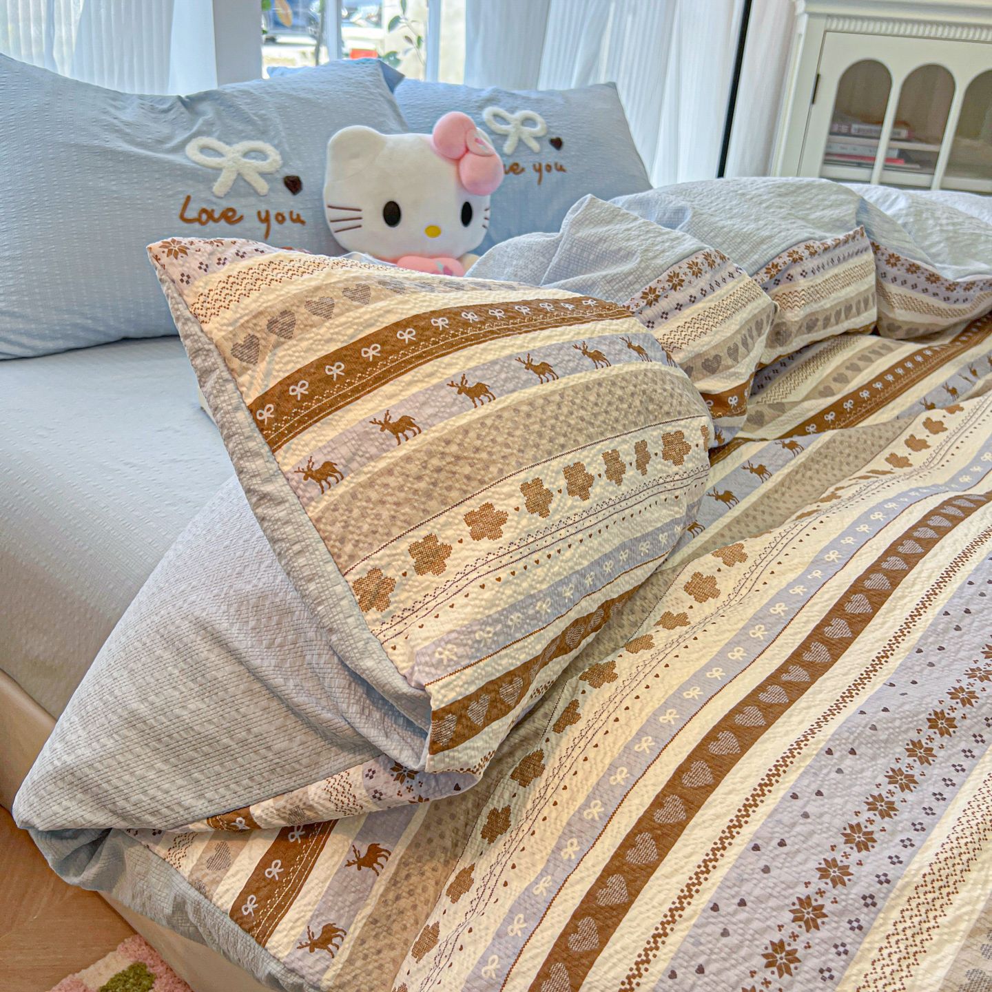 A類 コットン100% カートゥーン タオル刺繍 4点セット かわいい 小清新 フェアアイル 純綿 カバー 寮 3点セット