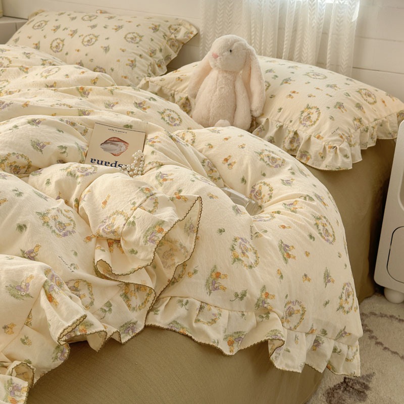 プリンセス風 レース 純綿 4点セット シャビーシック 小清新 シーツ カバー 3点セット