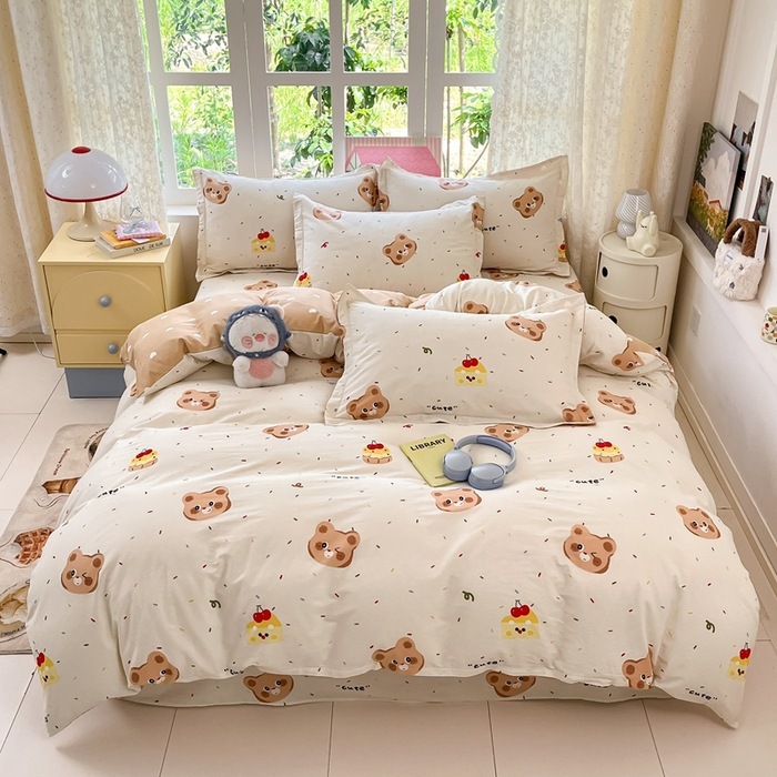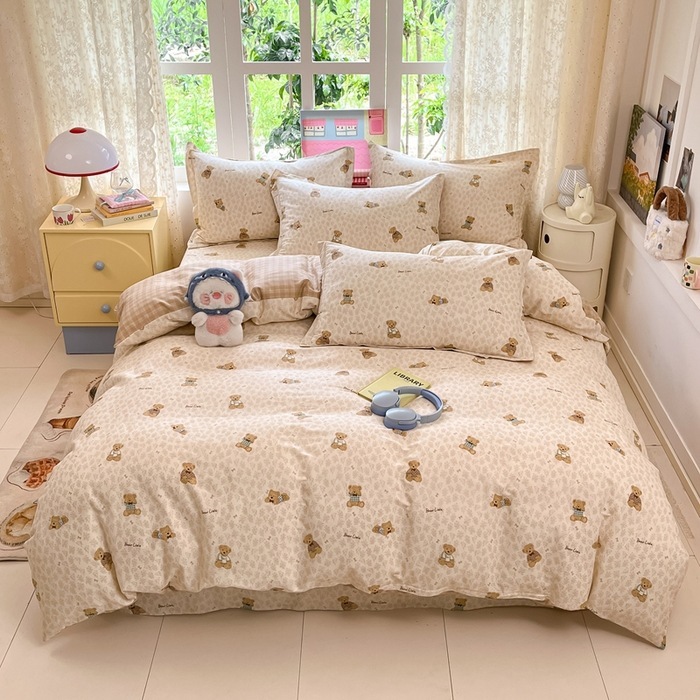 素肌に優しい 純綿 4点セット 小清新 コットン100% シーツ カバー 3点セット a類 ベッドリネン 学生寮