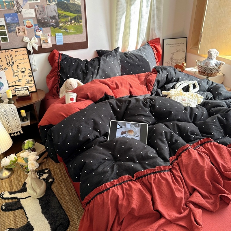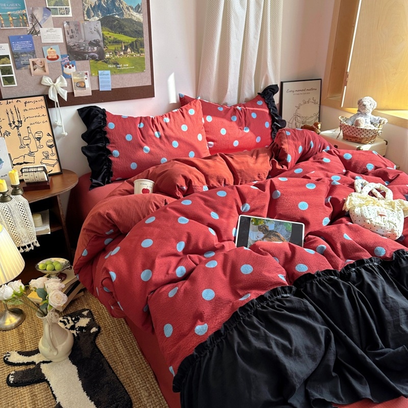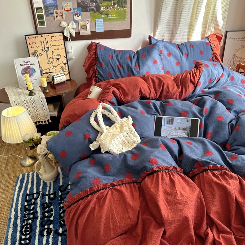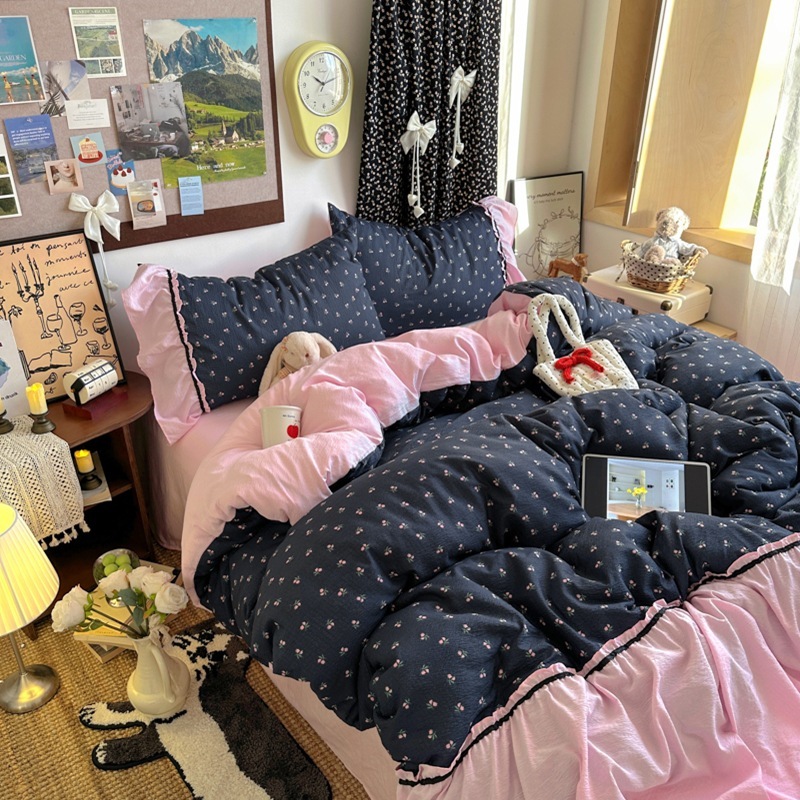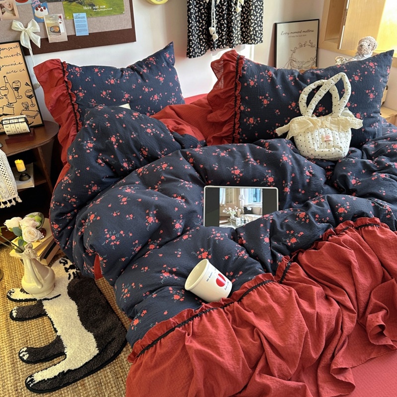 A類 コットン100% プリンセス風 4点セット フレンチレース 小花柄 カバー レトロ ベッドリネン 3点