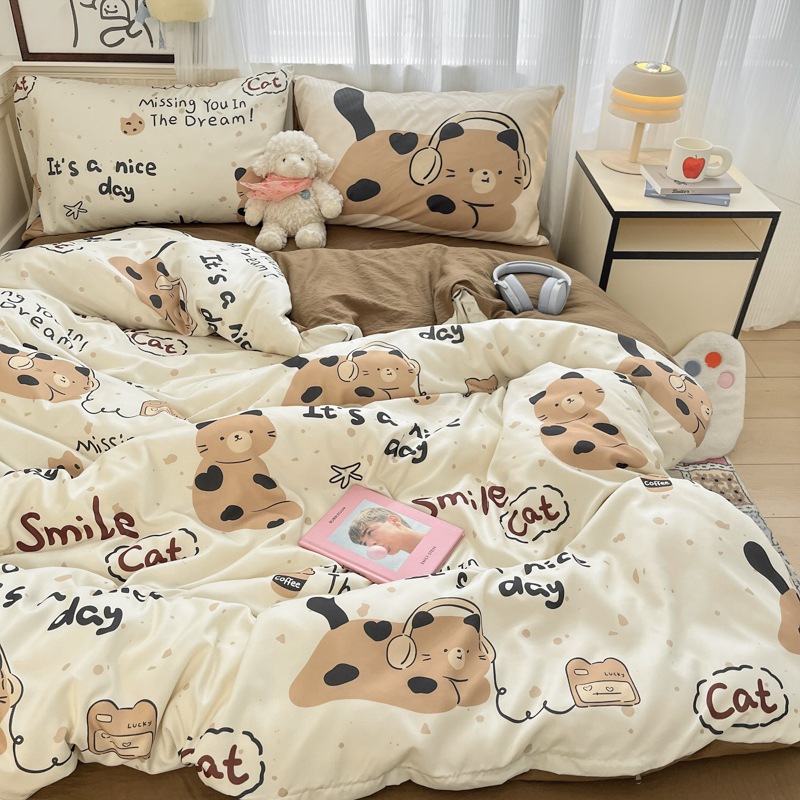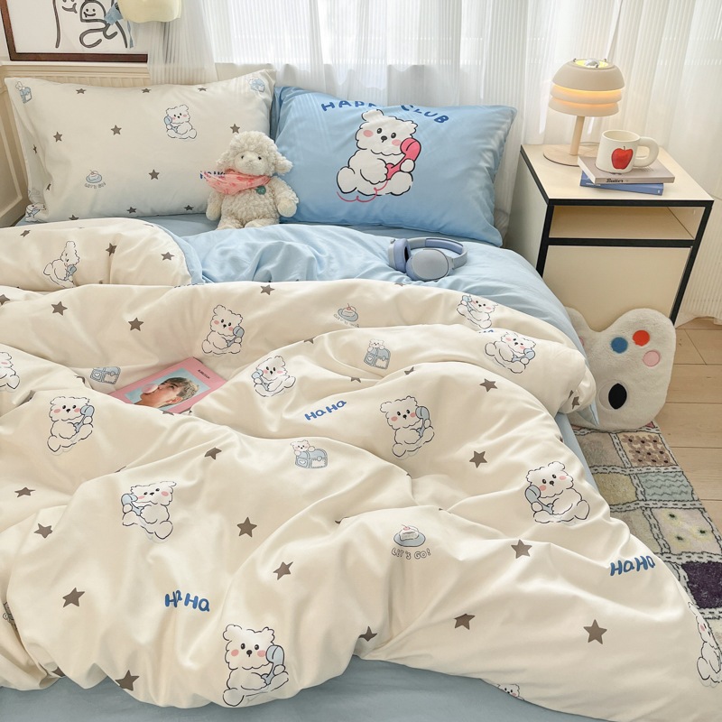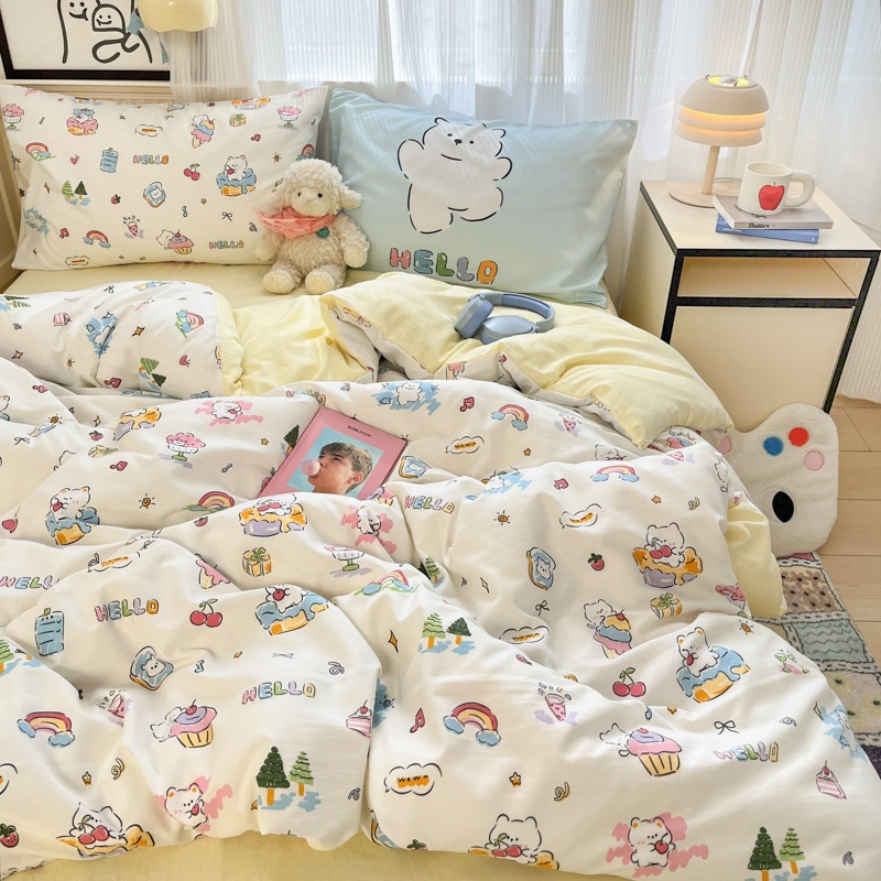 A類 カートゥーン コットン100% 4点セット ベッドリネン 純綿 シーツ 大阪 カバー 学生寮 3点セット