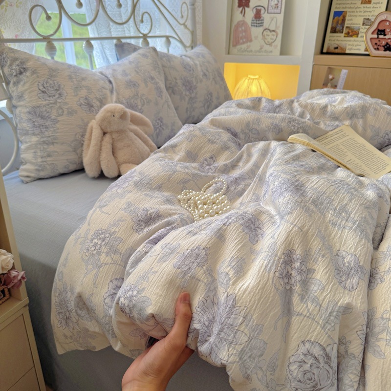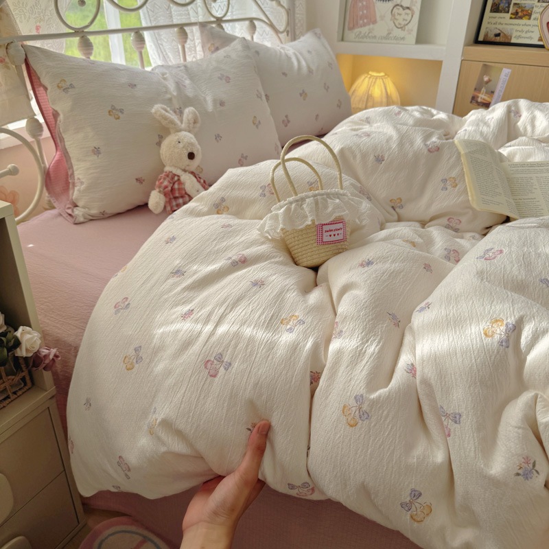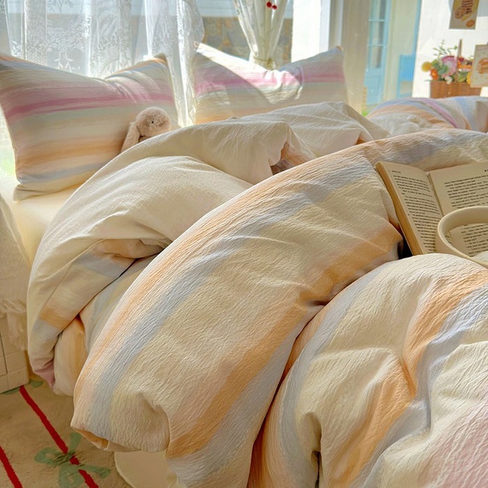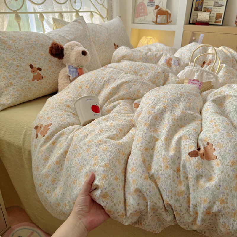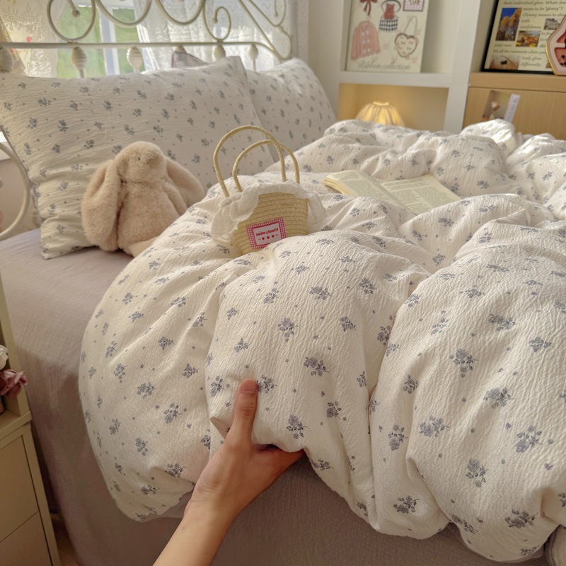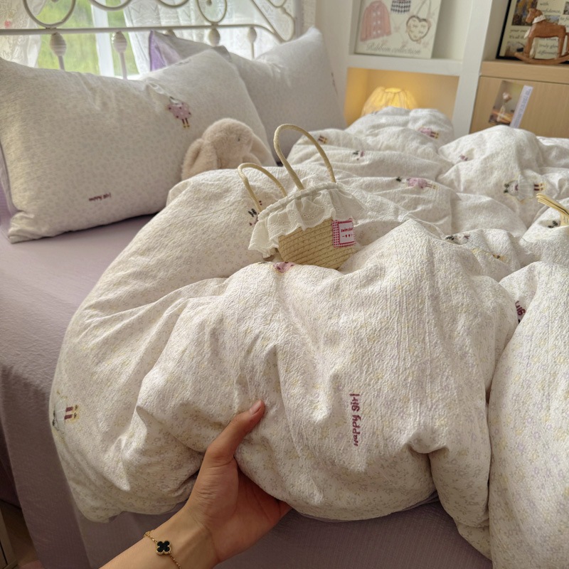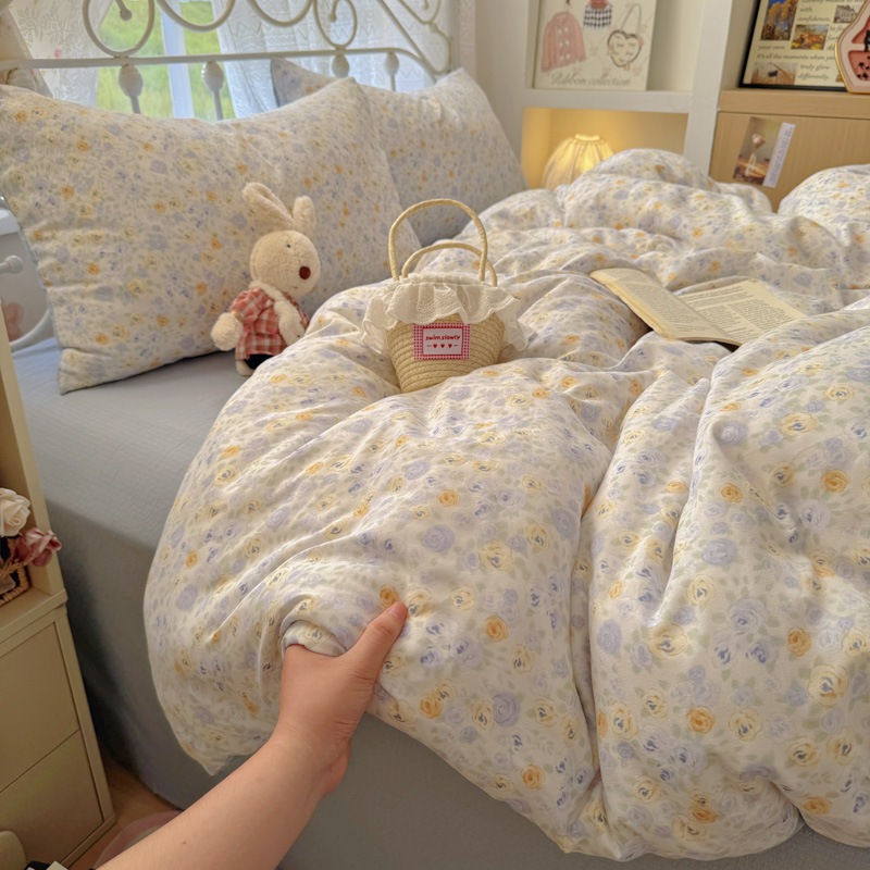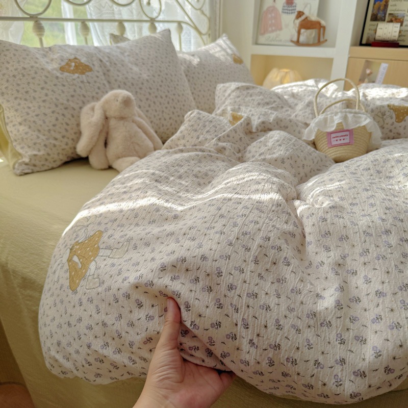 a類 ベビーグレード 純綿 4点セット 小清新 素肌に優しい コットン100% カバー ボックスシーツ 寮 シーツ 3点