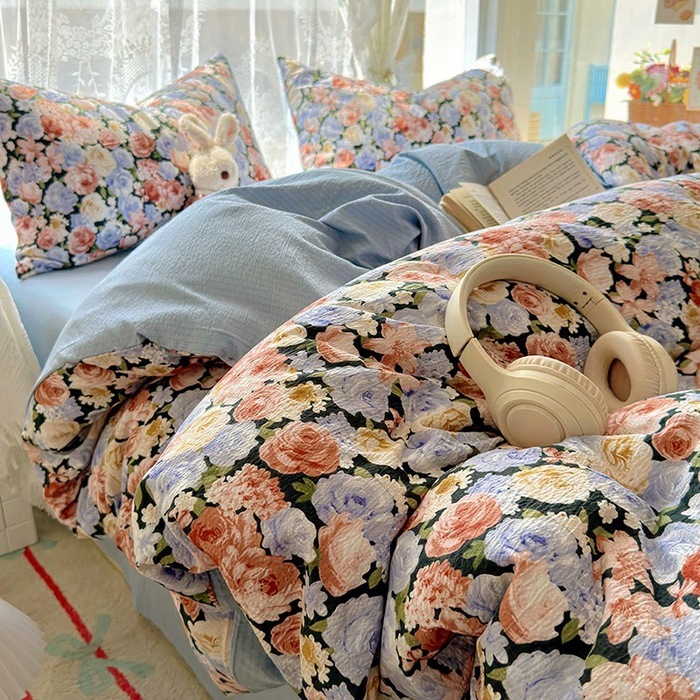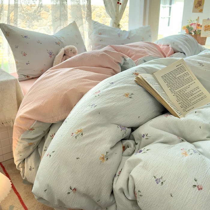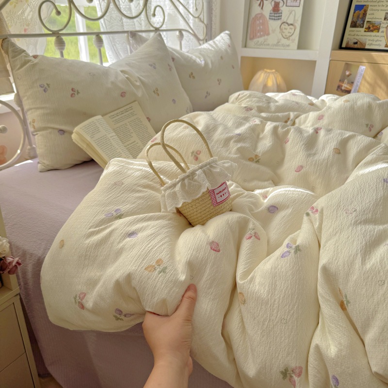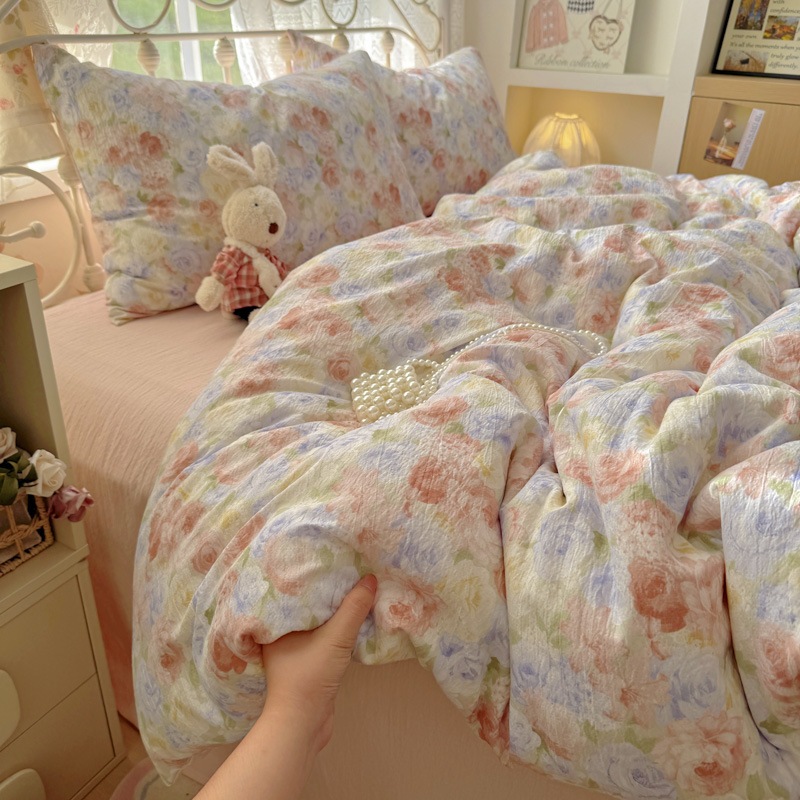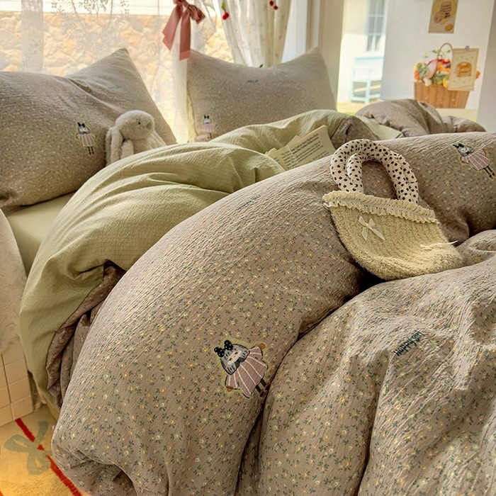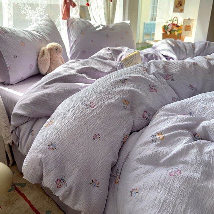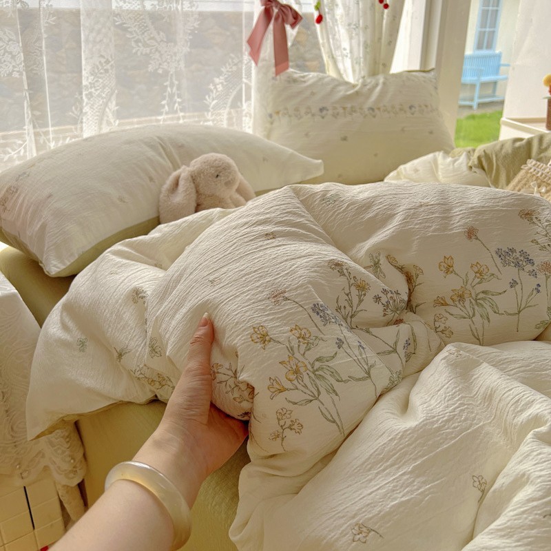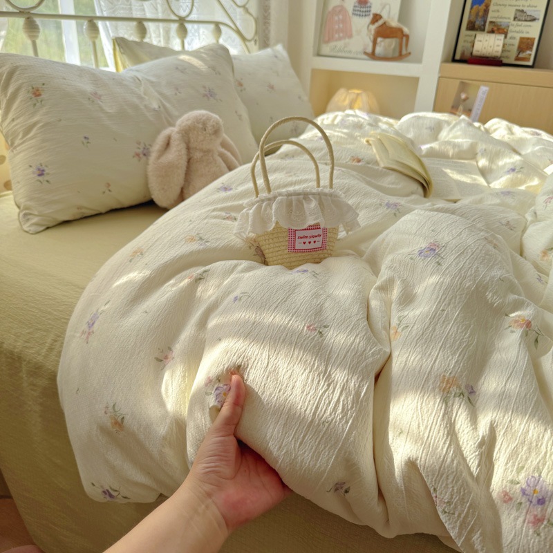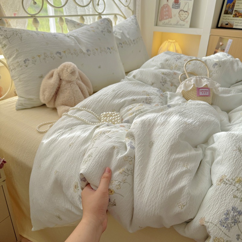 a類 ベビーグレード 純綿 4点セット 小清新 素肌に優しい コットン100% カバー ボックスシーツ 寮 シーツ 3点