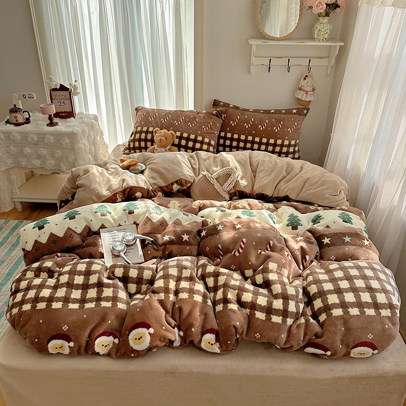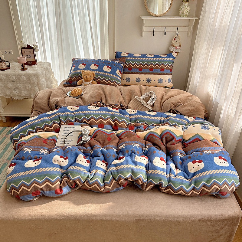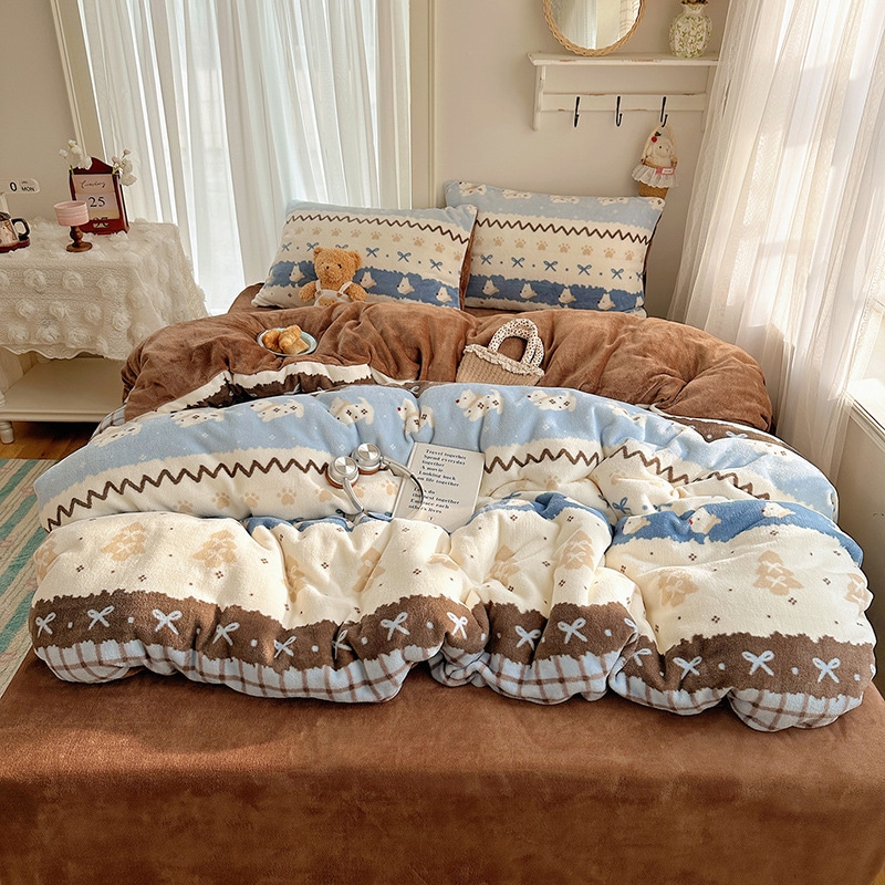 A類 少女 カートゥーン かわいい 厚手 ミルクボア 4点セット シーツ カバー 学生寮 3点セット