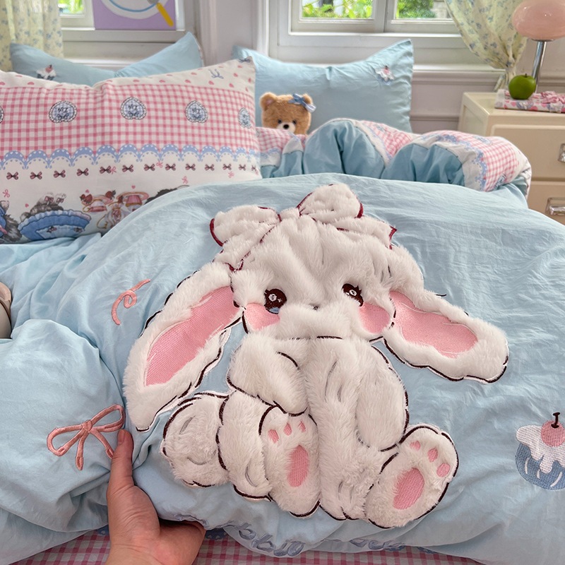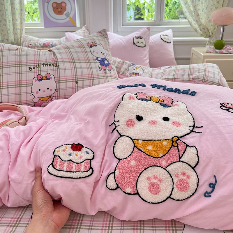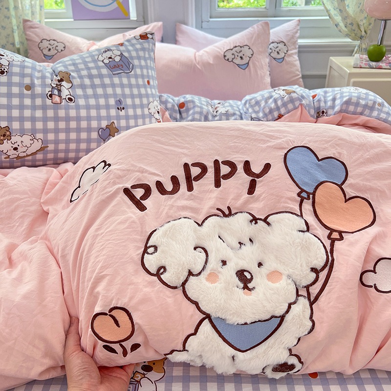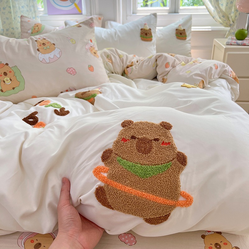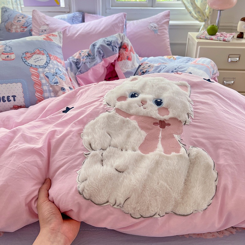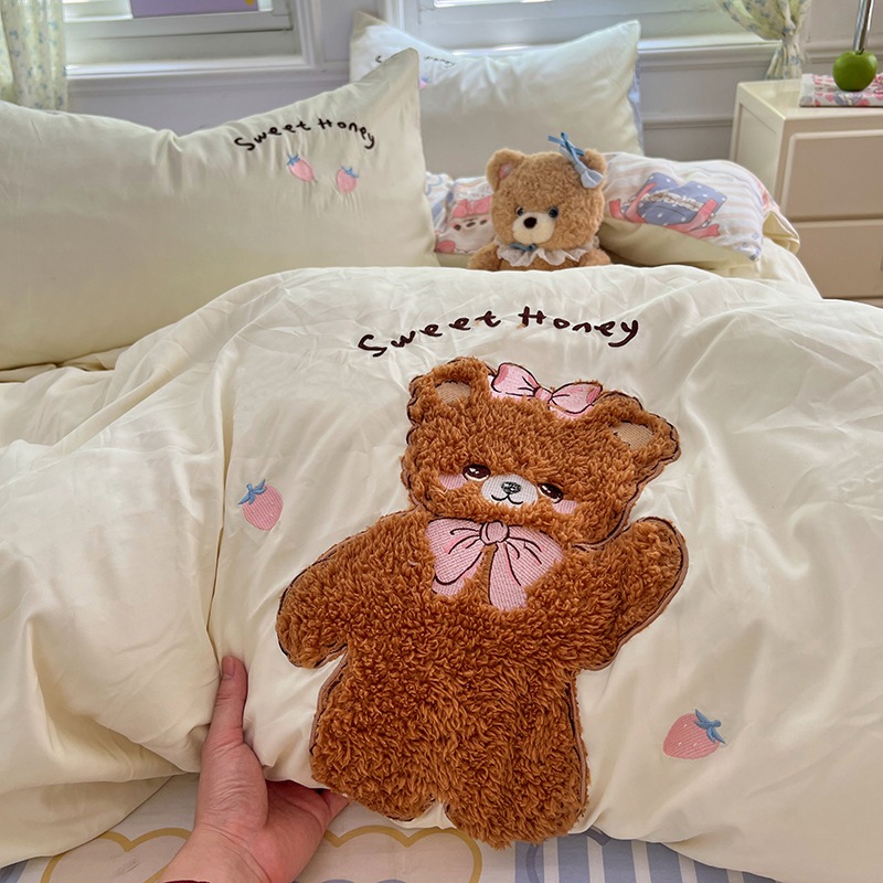 素肌に優しい 純綿 4点セット タオル刺繍 パッチ刺繍 カートゥーン コットン100% シーツ カバー a類 ベッドリネン
