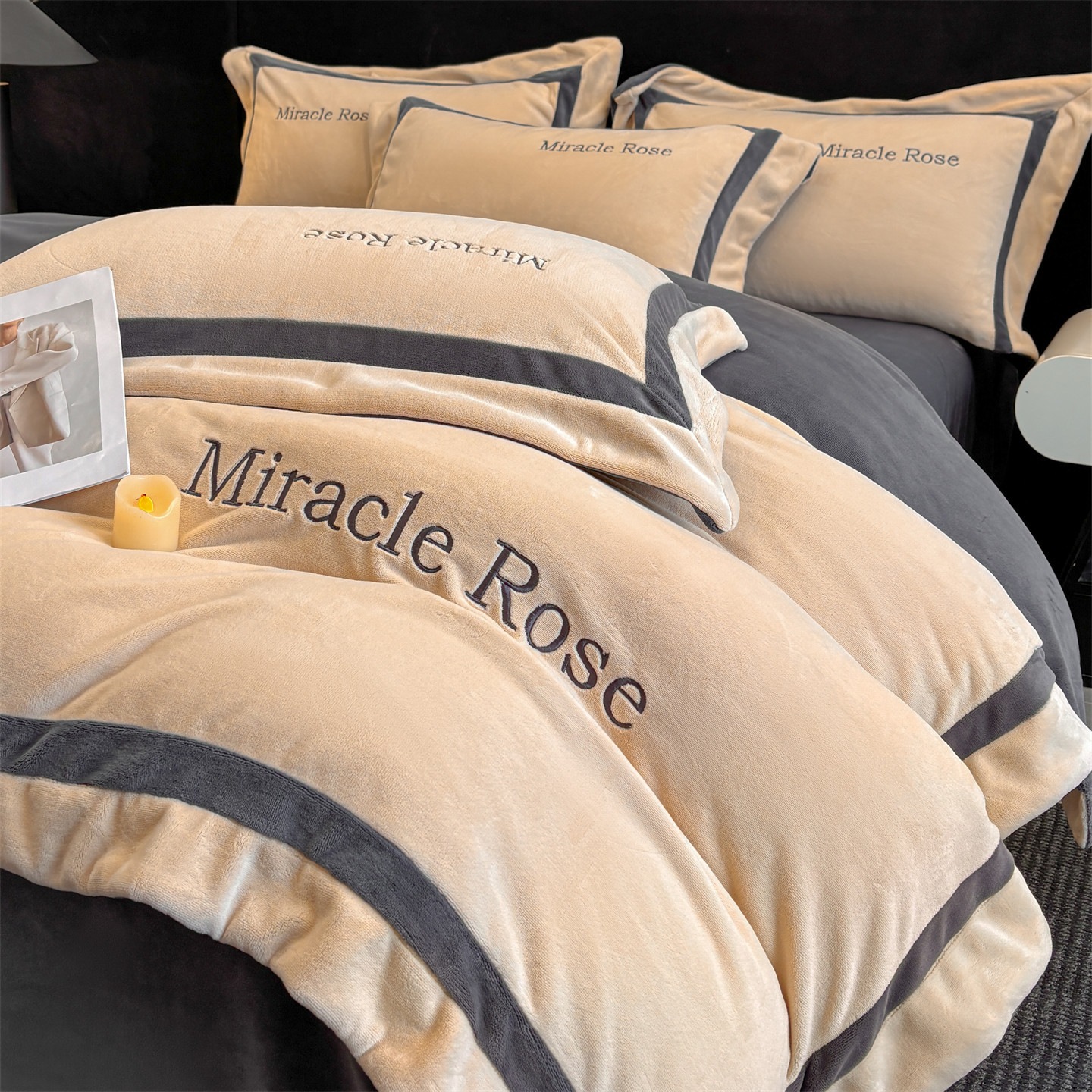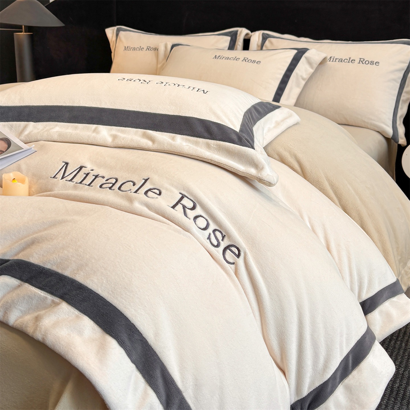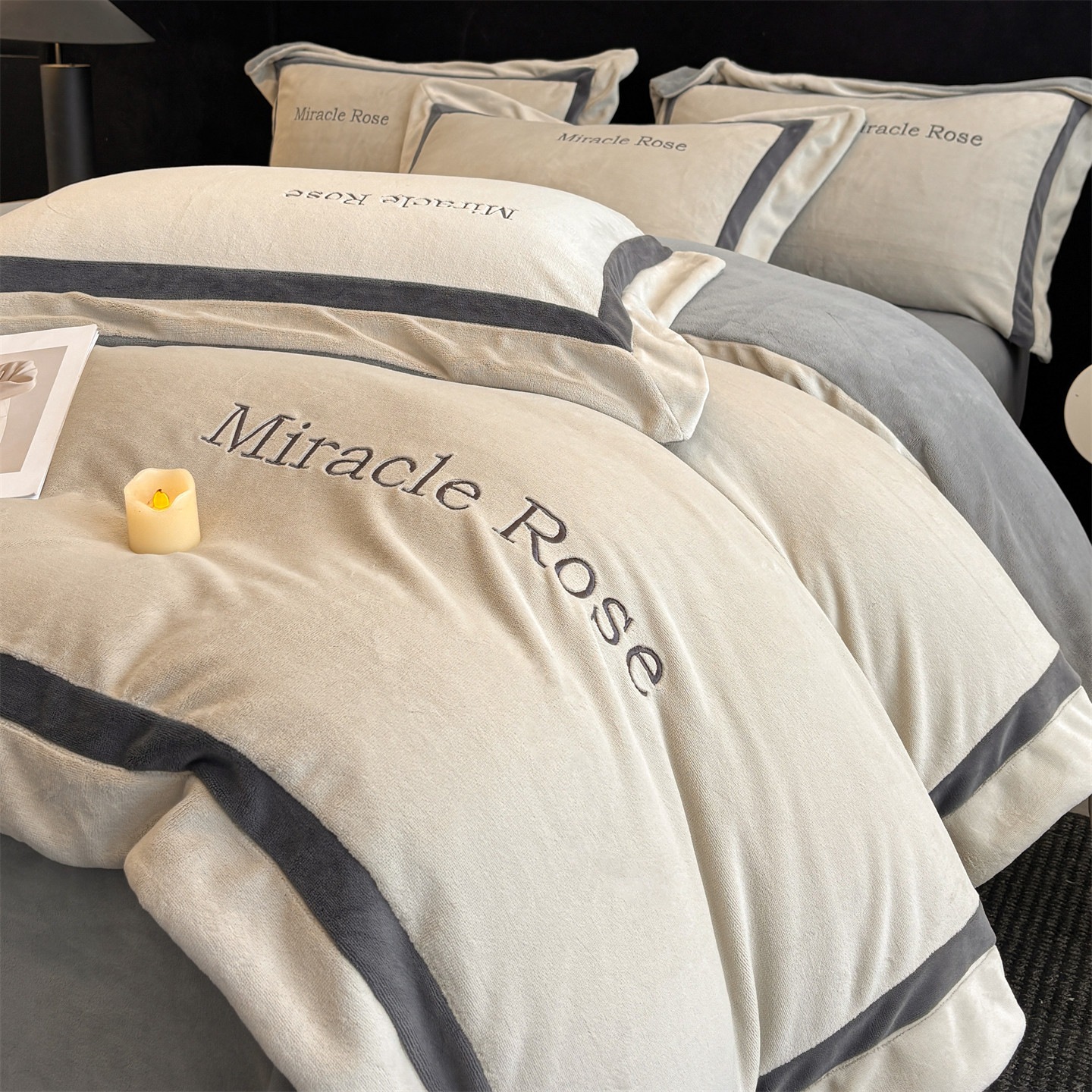 欧風シンプル A類 厚手 ミルクボア ラグジュアリー 幅広 4点セット ボア シーツ カバー 主寝室 刺繍