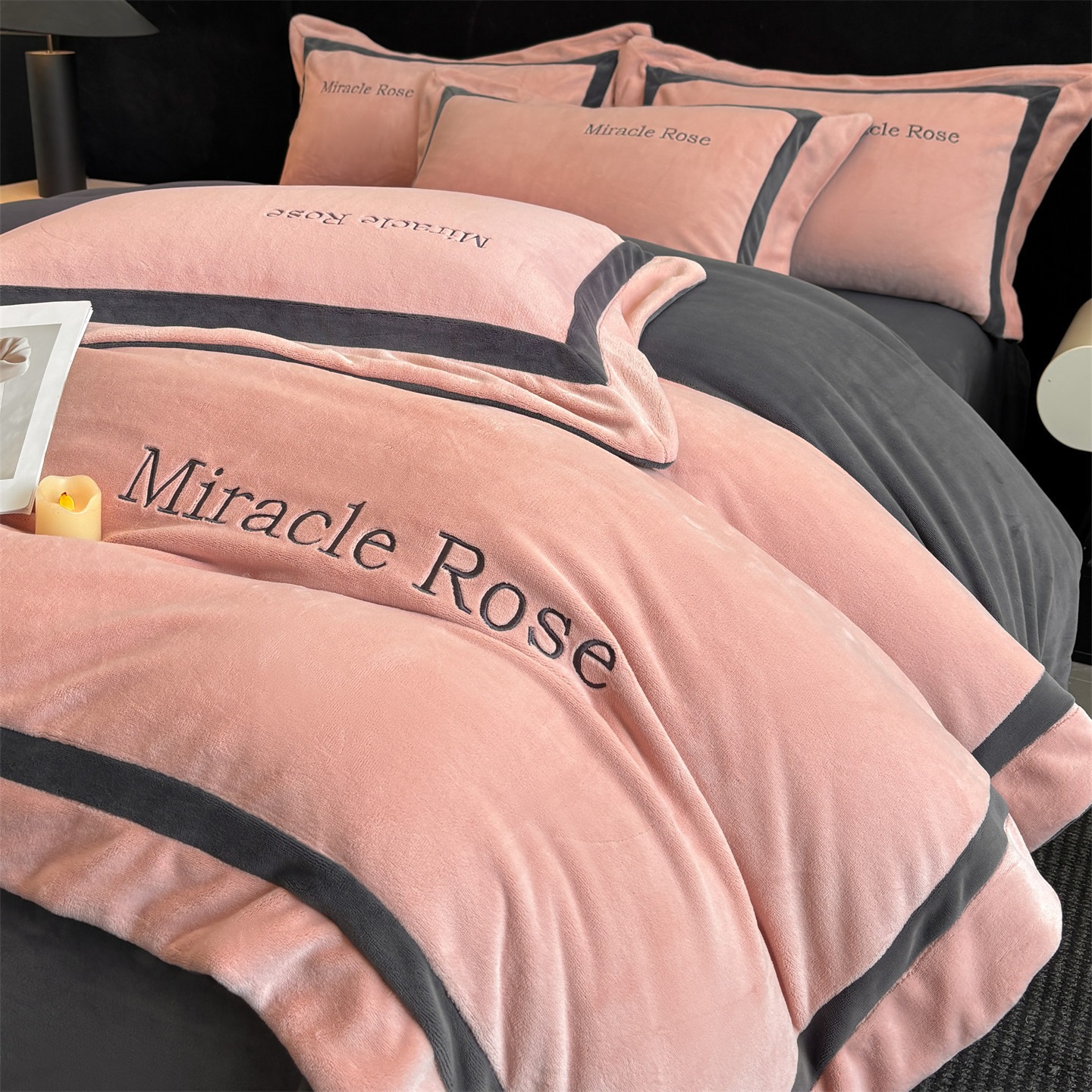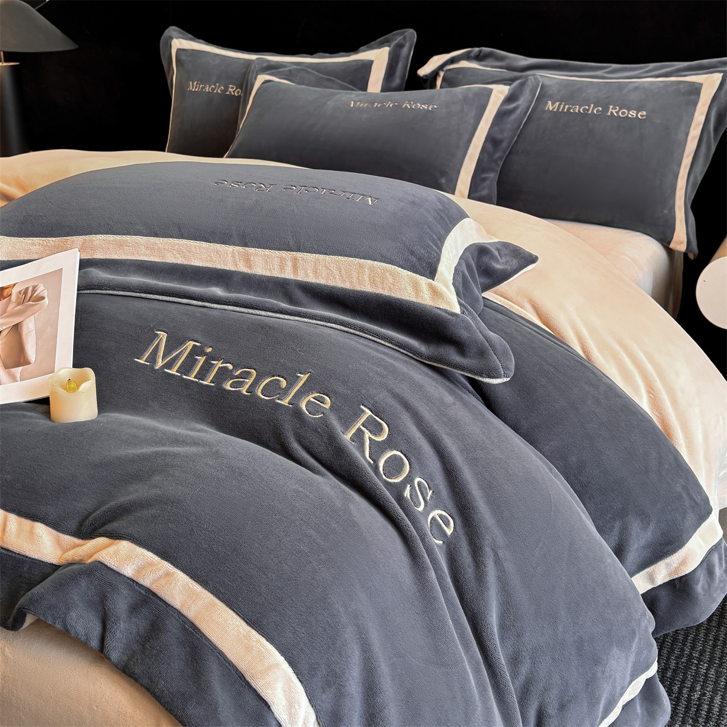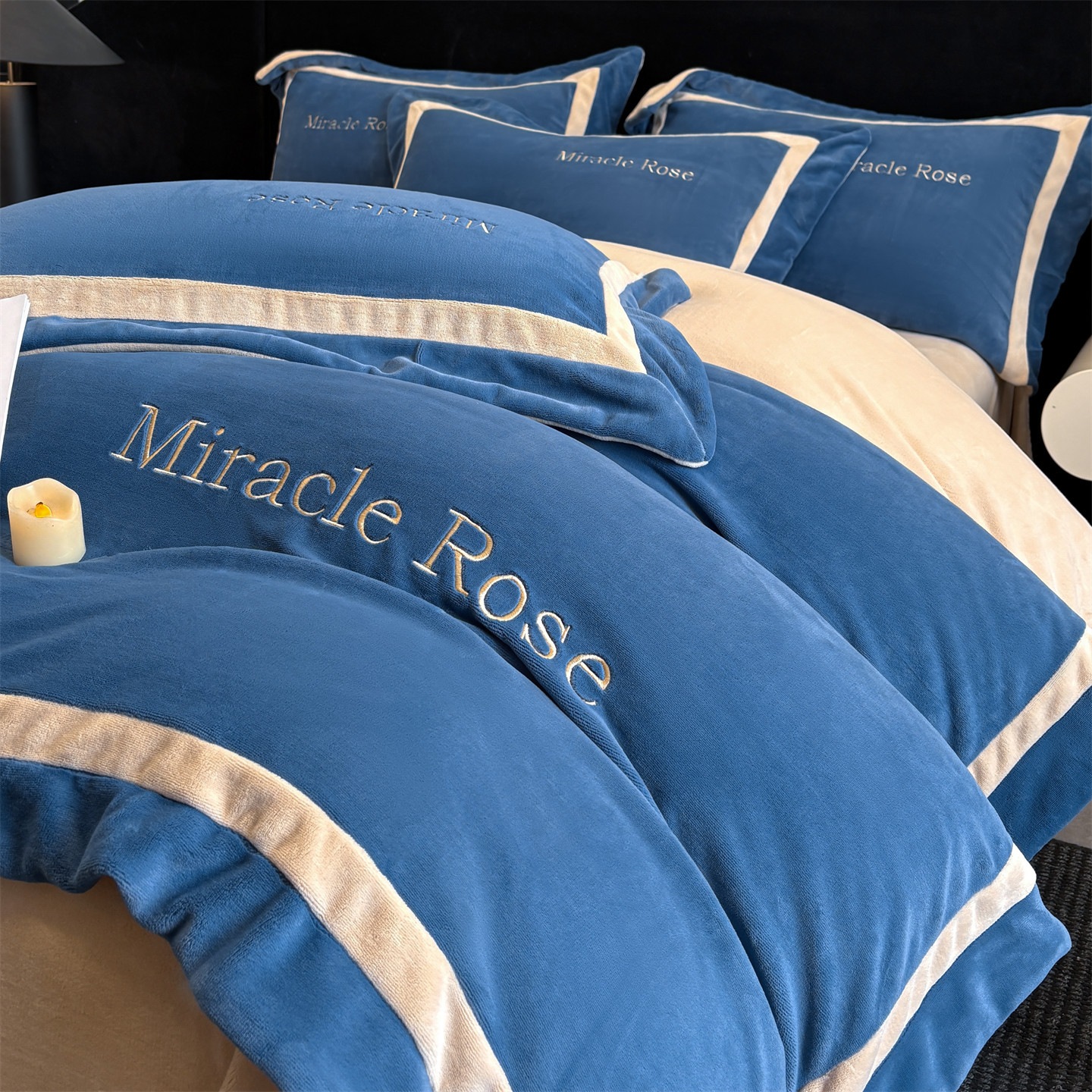 欧風シンプル A類 厚手 ミルクボア ラグジュアリー 幅広 4点セット ボア シーツ カバー 主寝室 刺繍