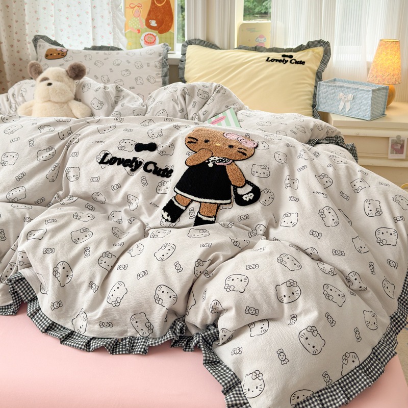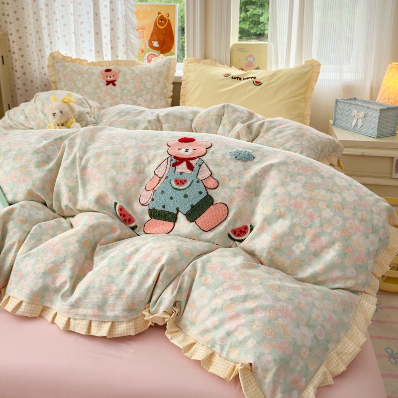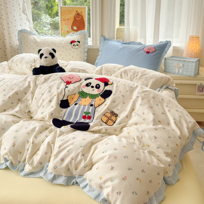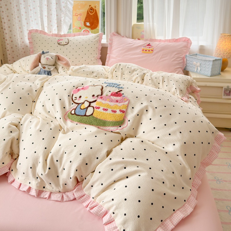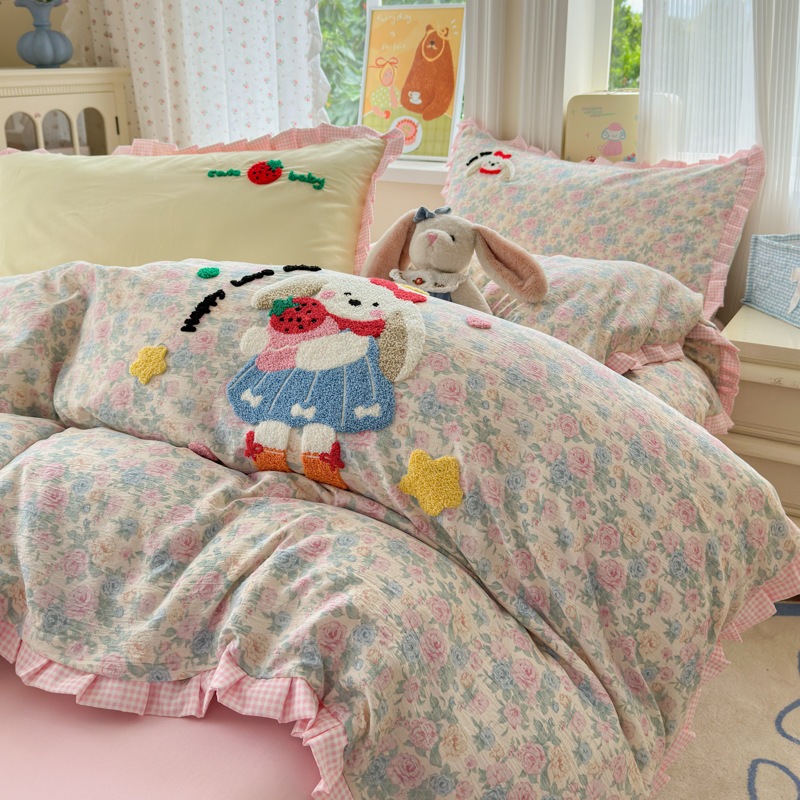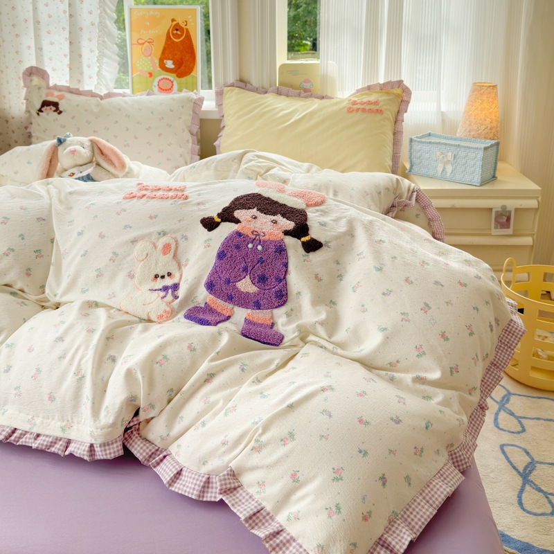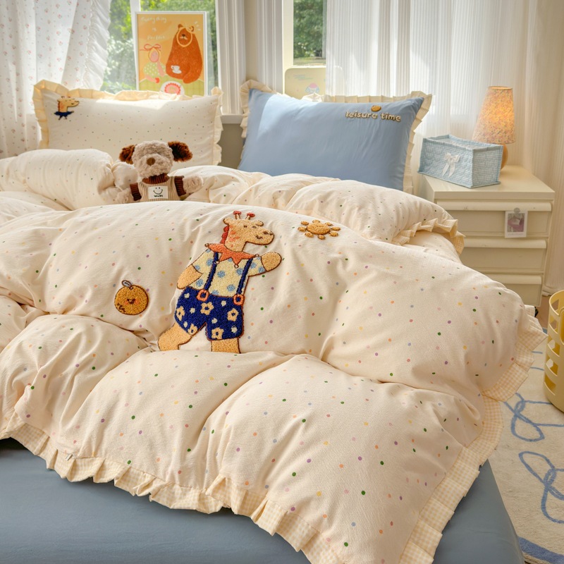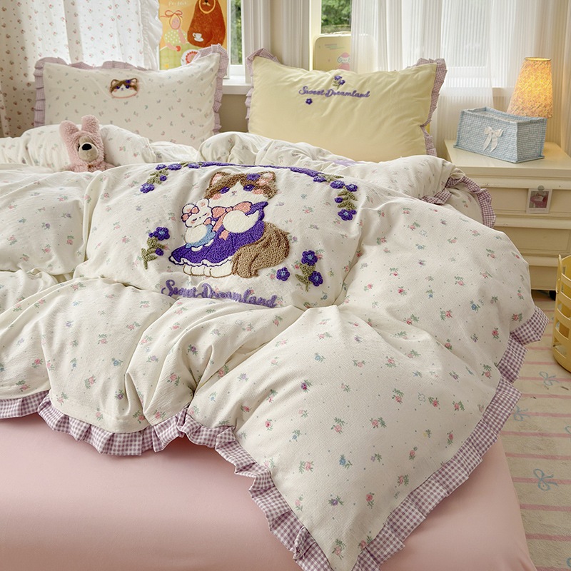 A類 コットン100% レース 4点セット プリンセス風 タオル刺繍 カバー シーツ コットン100% ベッドリネン