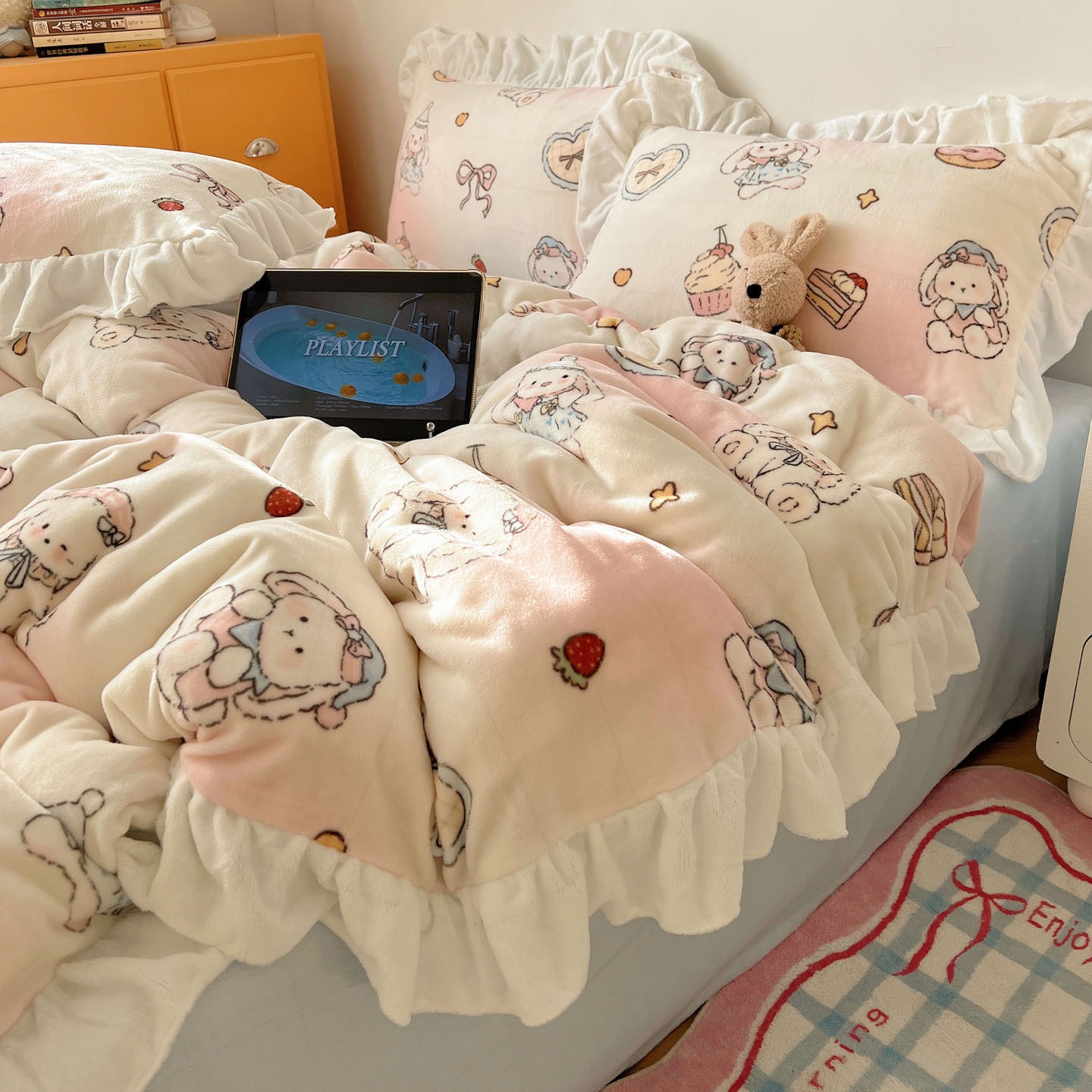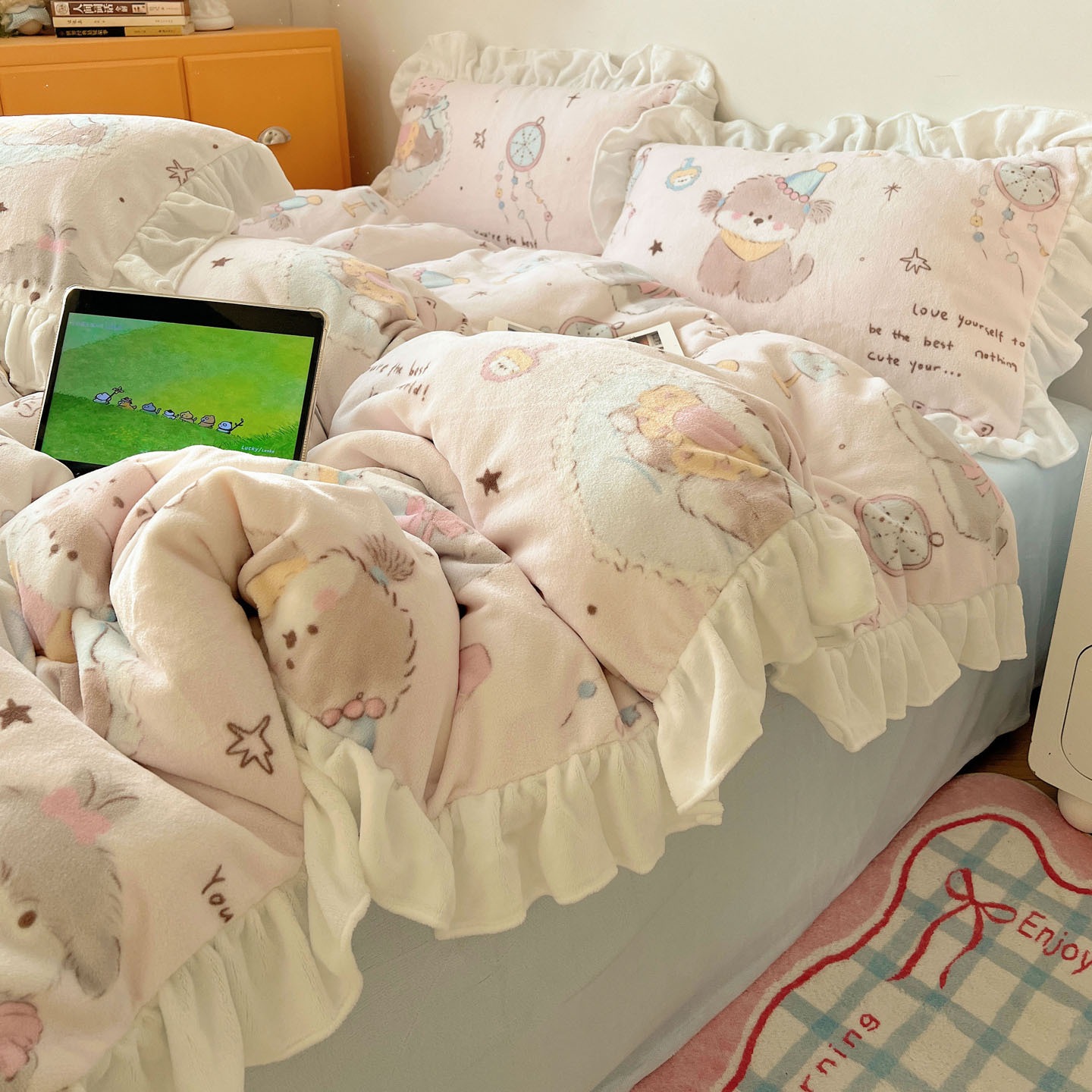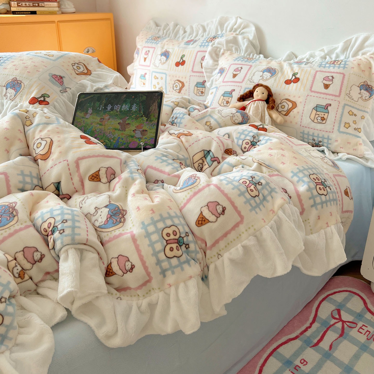 カートゥーン ミルクボア 4点セット 小清新 かわいい ボア カバー プリンセス風 レース A類