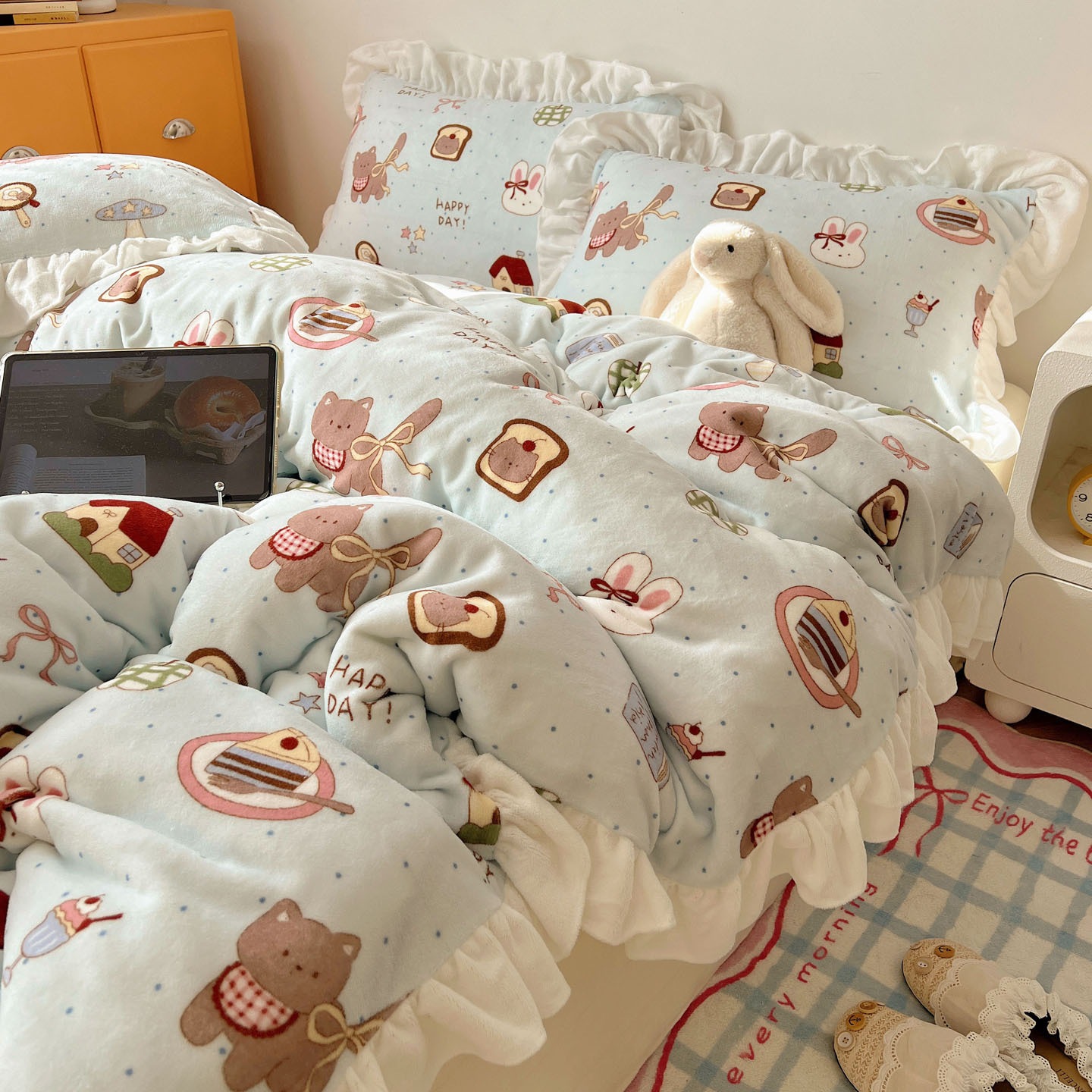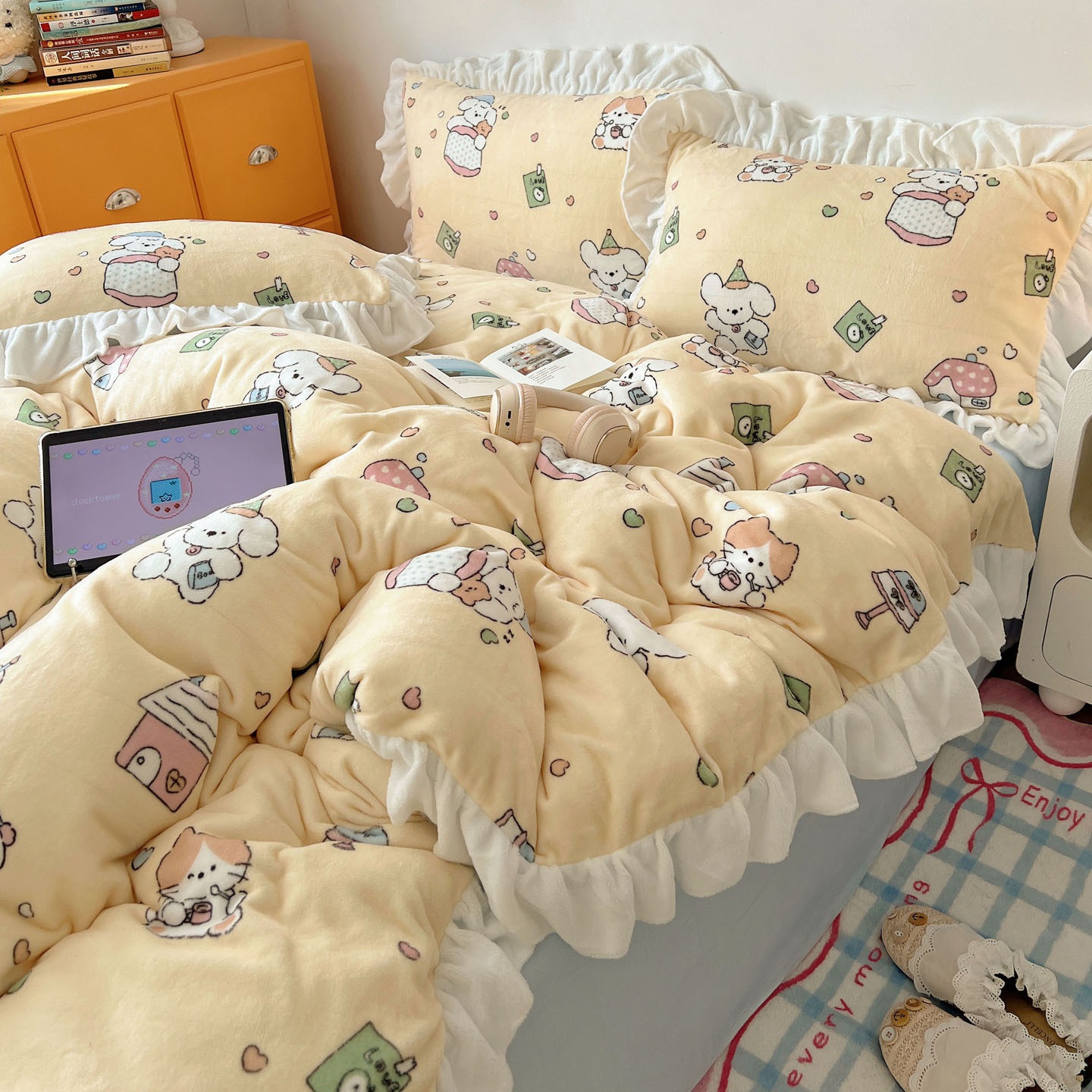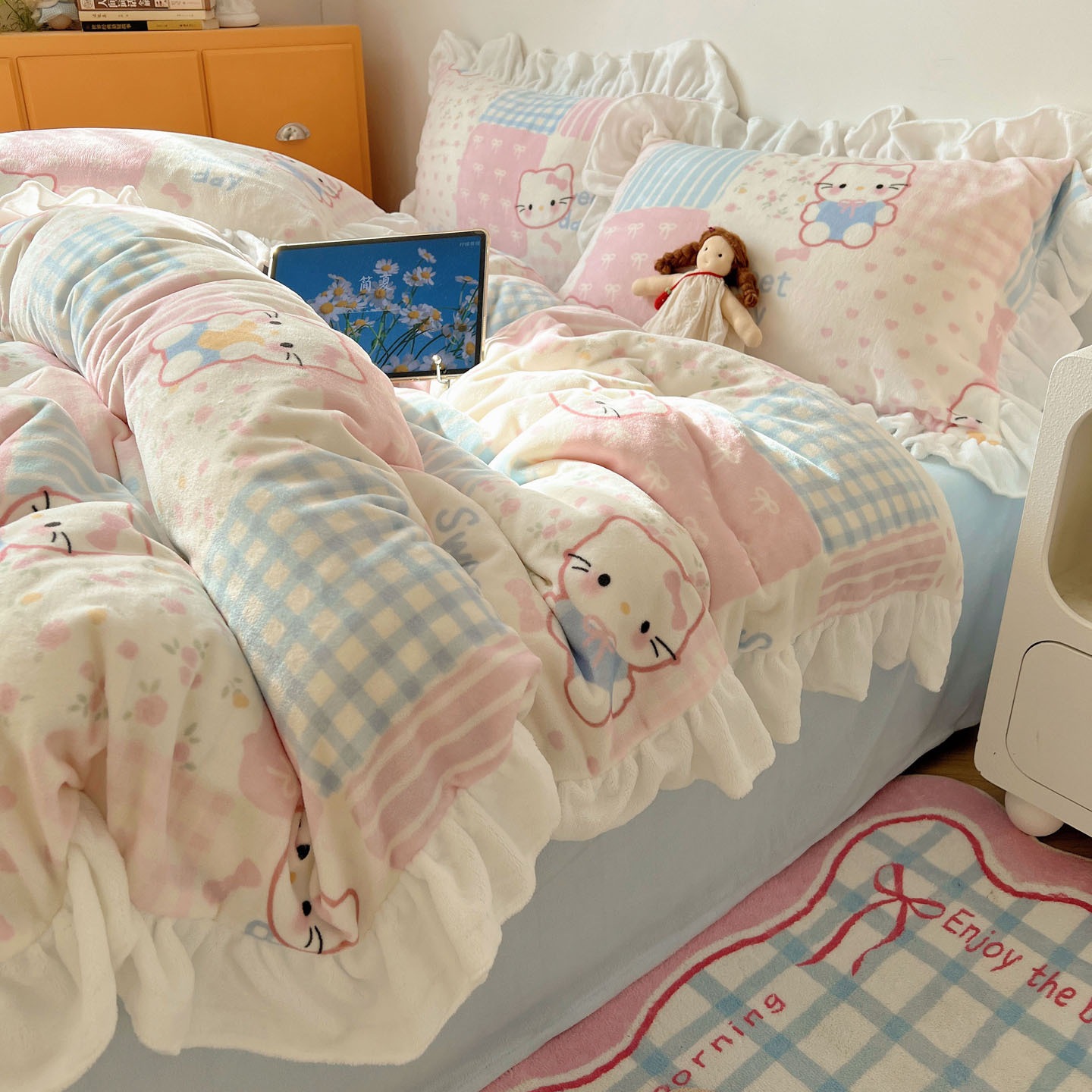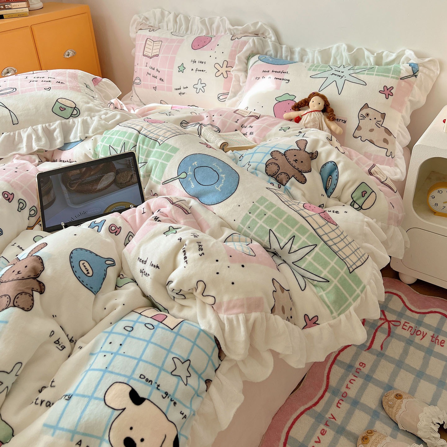 カートゥーン ミルクボア 4点セット 小清新 かわいい ボア カバー プリンセス風 レース A類