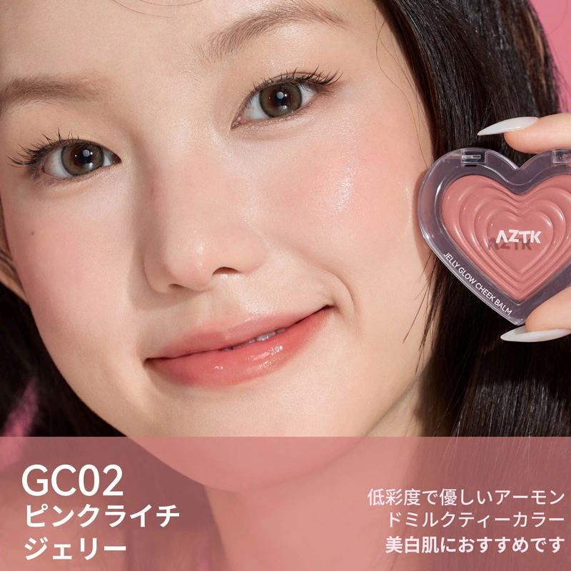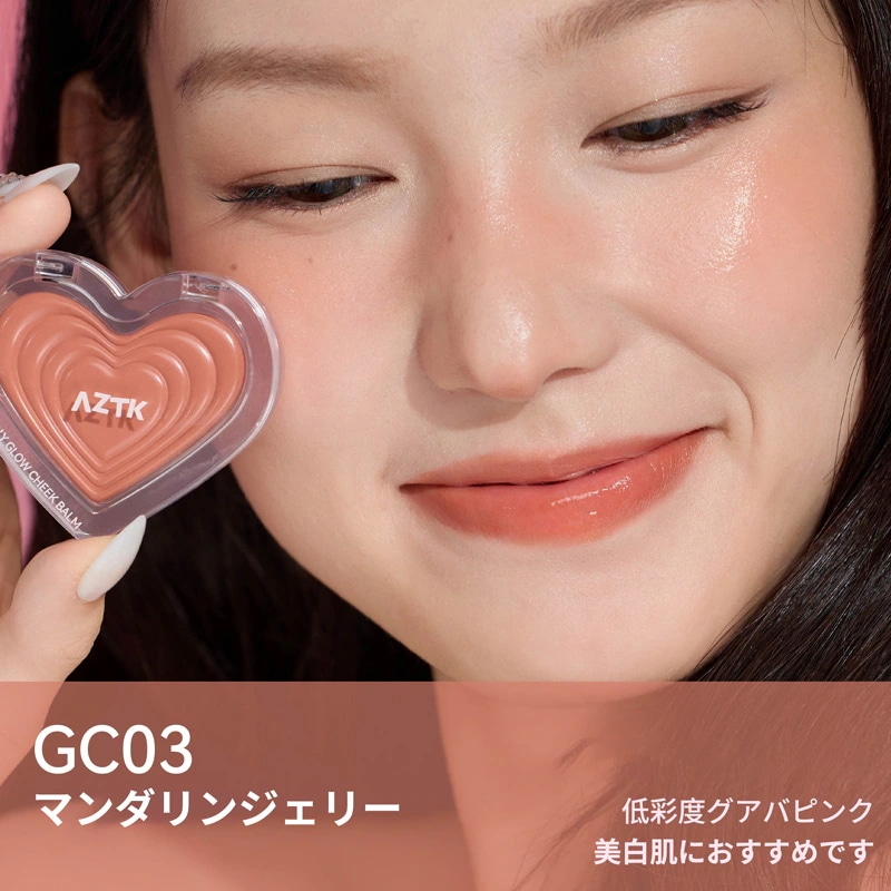 AZTKAZTK【 新作登場!公式正規品】チーク 水光チーククリーム 膨張収縮色雰囲気感 水彩チーク リキッドチーク ツヤ 血色チーク ハート ハート型の可愛いデザイン高発色 高密着