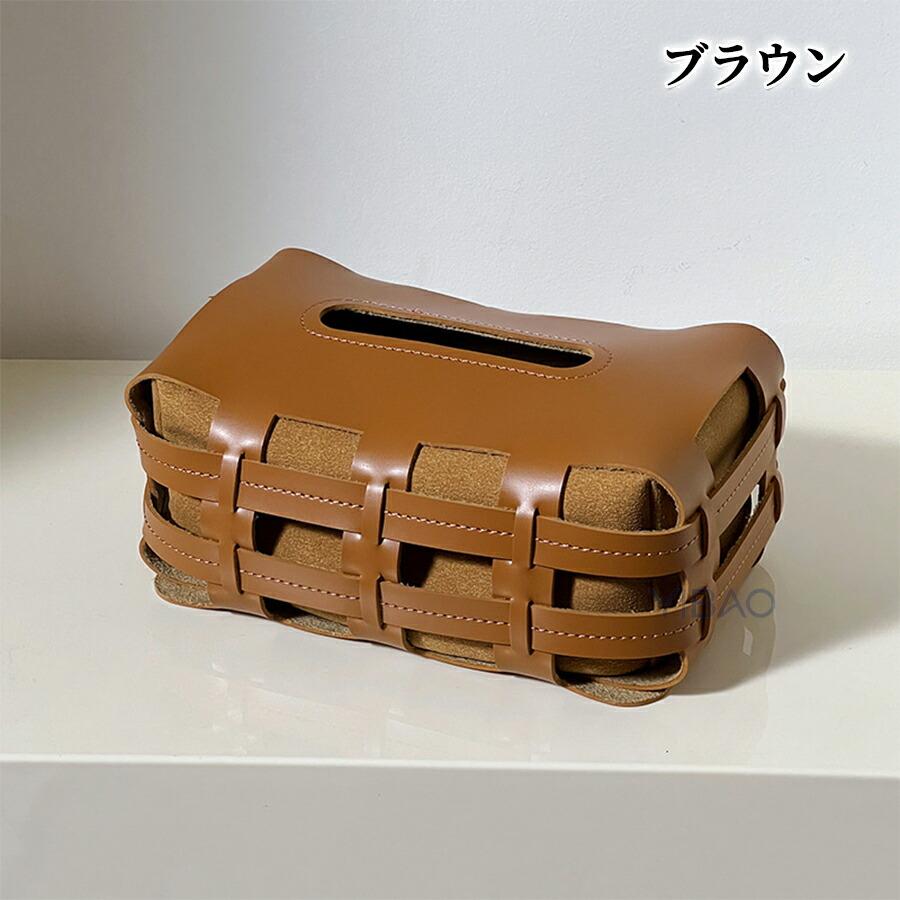 ティッシュケース ティッシュカバー PU革 北欧 おしゃれ かわいい コンパクト ティッシュボックス 韓国インテリア 編み込みデザイン