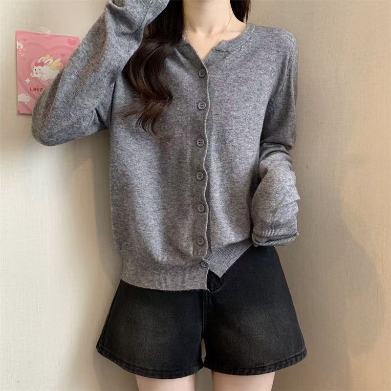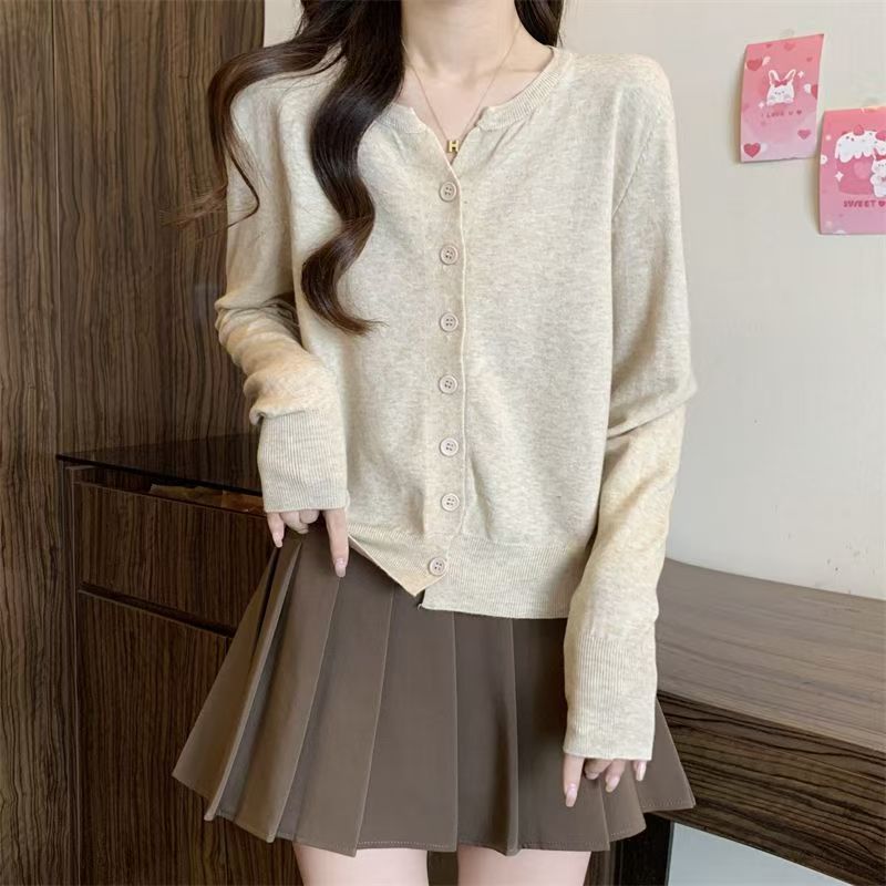 ニットカーディガン レディース ラウンドネック 長袖 無地 ゆったり 体型カバー レトロ カジュアル 羽織り トップス 春秋 韓国ファッション 人気 トレンド おしゃれ