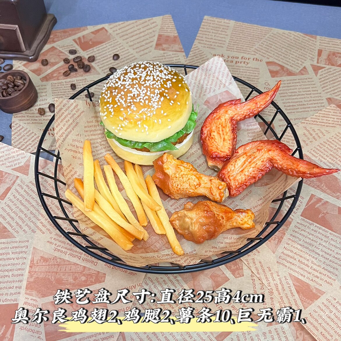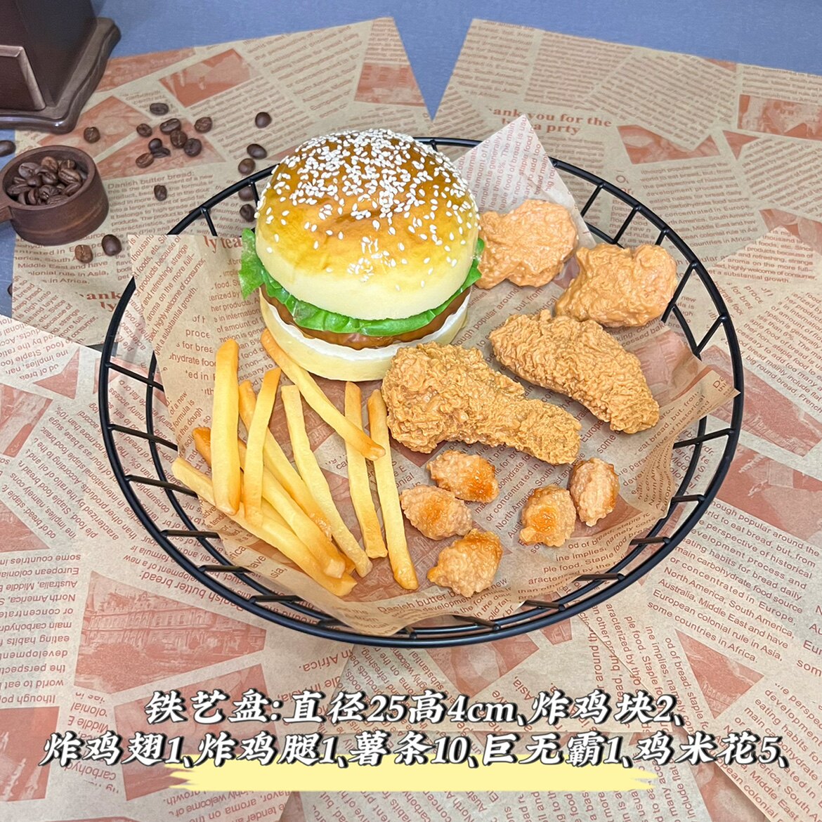 模擬食品モデル:フライドチキンポテトチップスチキンポップコーンハンバーガー食品小道具ショーウィンドウ展示品撮影小道具
