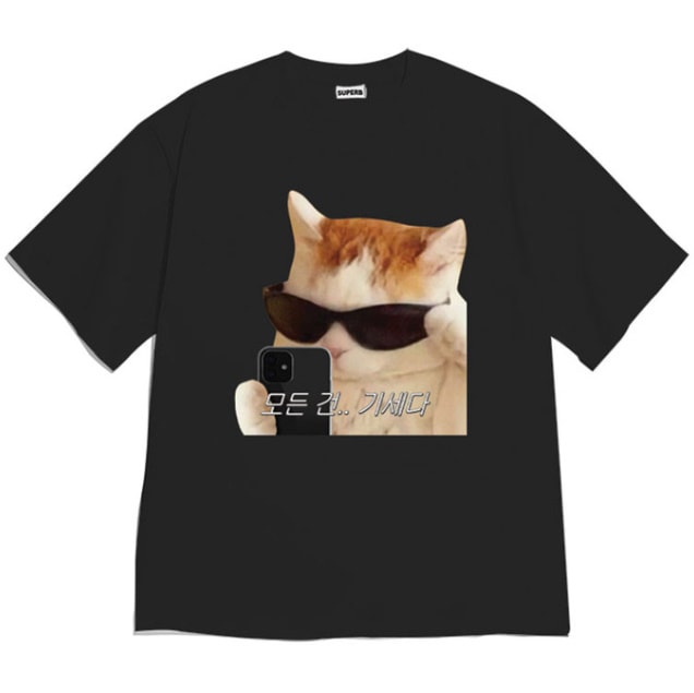 韓国 猫 すべては..勢いだ T-shirts (選べる2種) 韓国語 かわいい ティーシャツ ネタ ホームウェア 渡韓 プレセント お土産