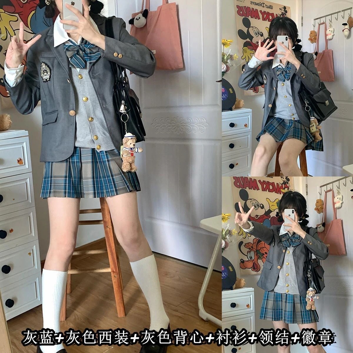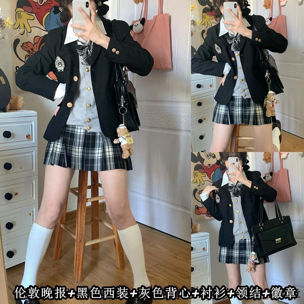 セットアップ レディース 6点セット 長袖 制服 ジャケット シャツ スカート リボン 卒業式 女子 スーツ 小学校 卒服 韓国ファッション 女の子 お受験 プリーツスカート きれいめ 学生服 高校