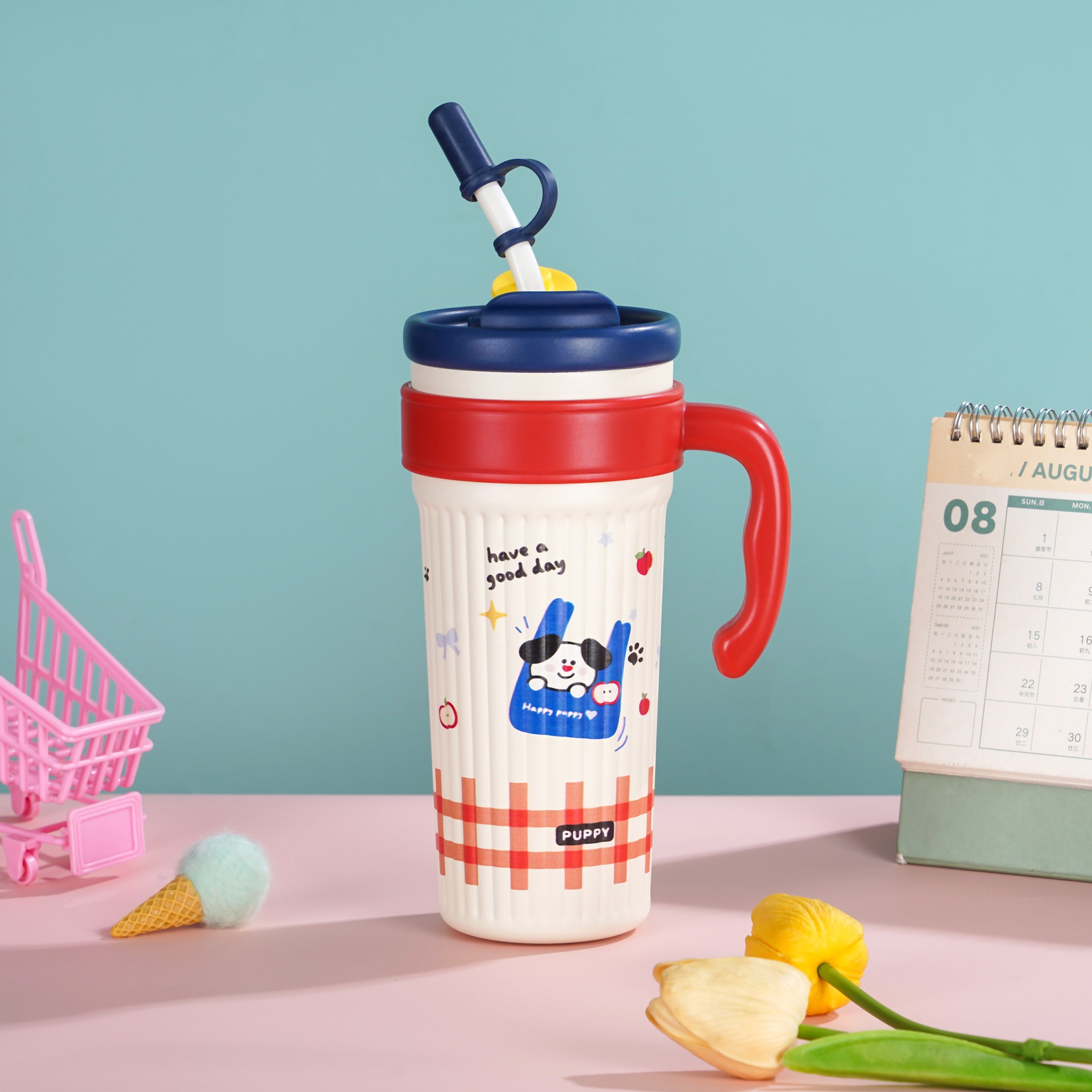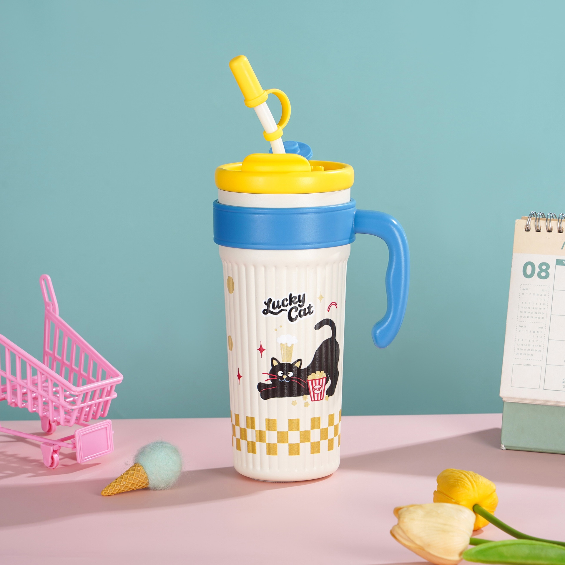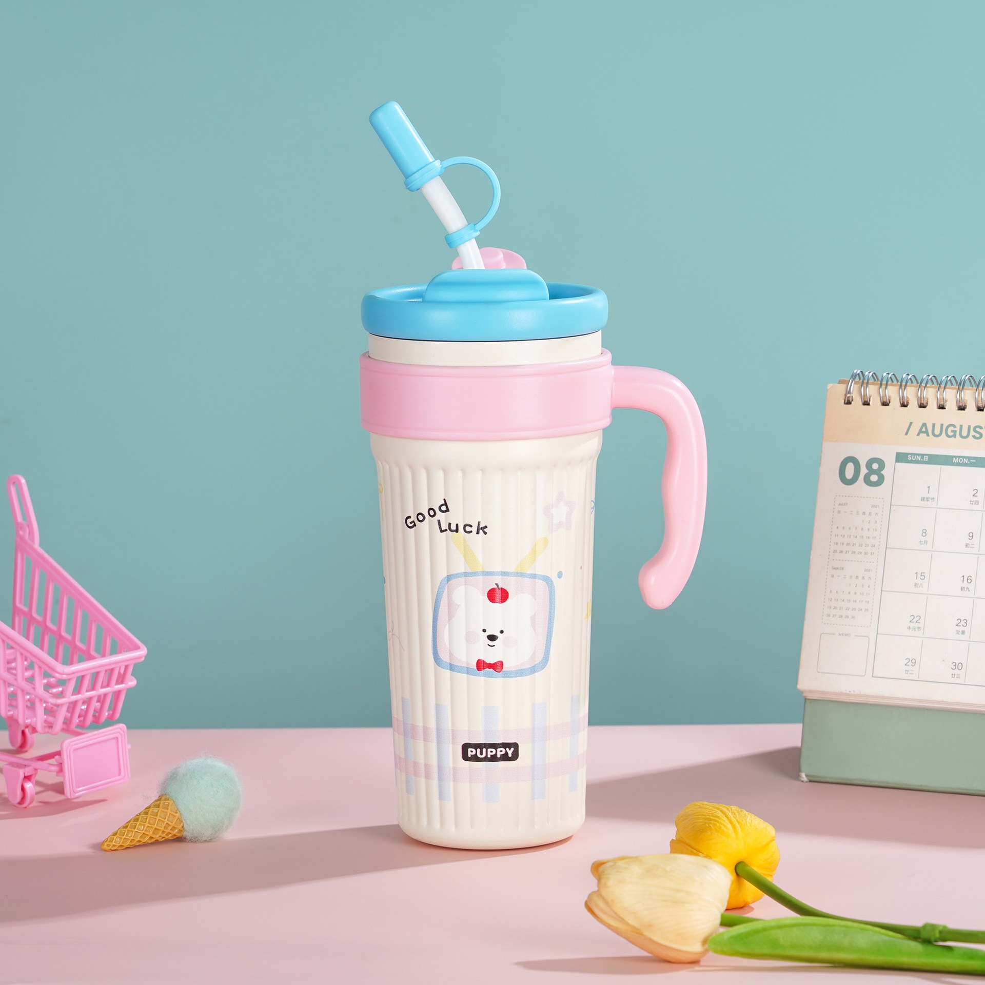 新型高ルックスストローコーヒーカップ保温カップ大容量カートゥーンアイス覇カップかわいいハンドル付きダブルドリンクカップ