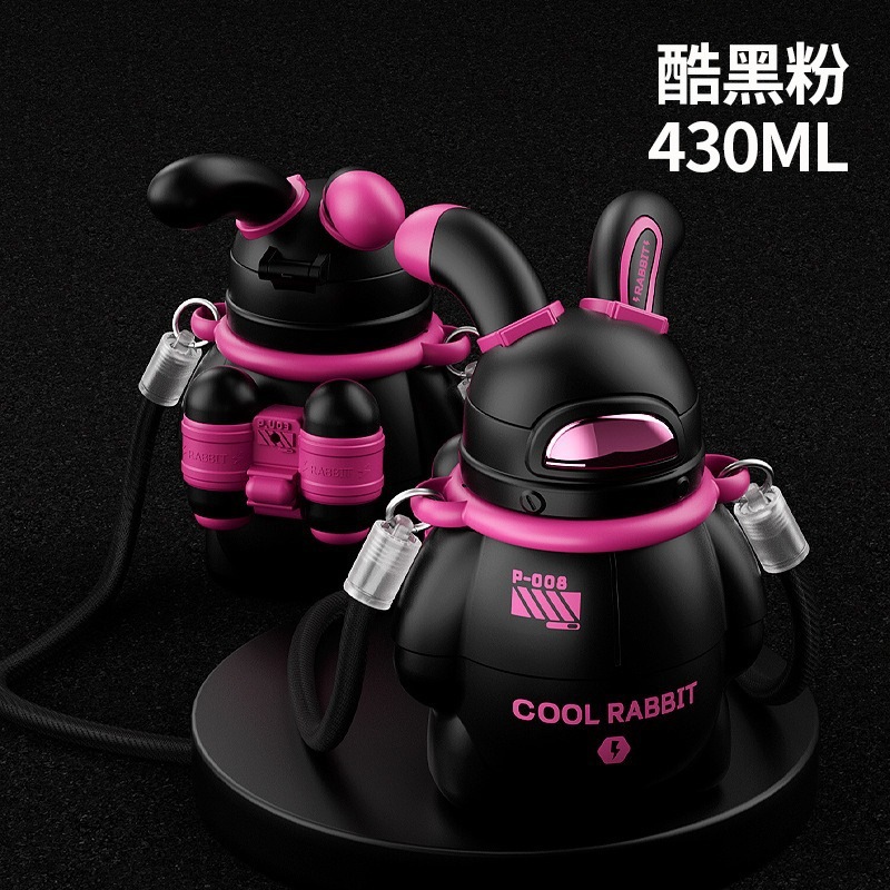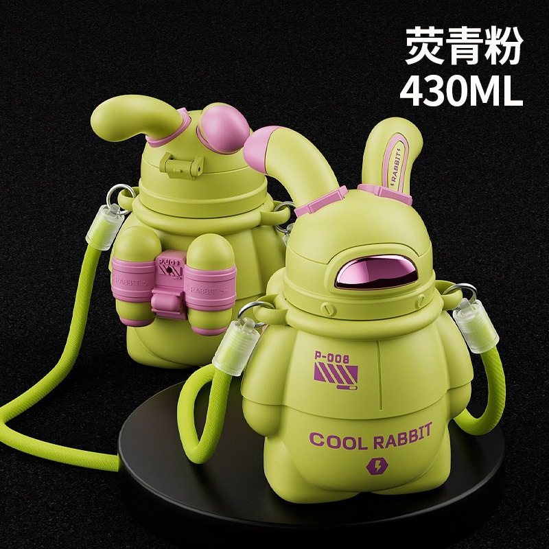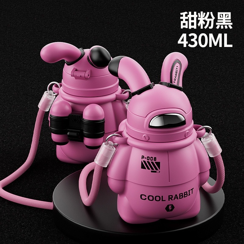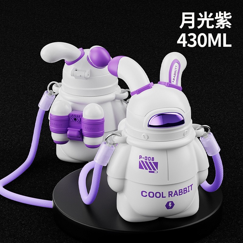 スペースムーンウサギ保温カップ316大容量子供用ストローコップ潮遊びウサギコップ