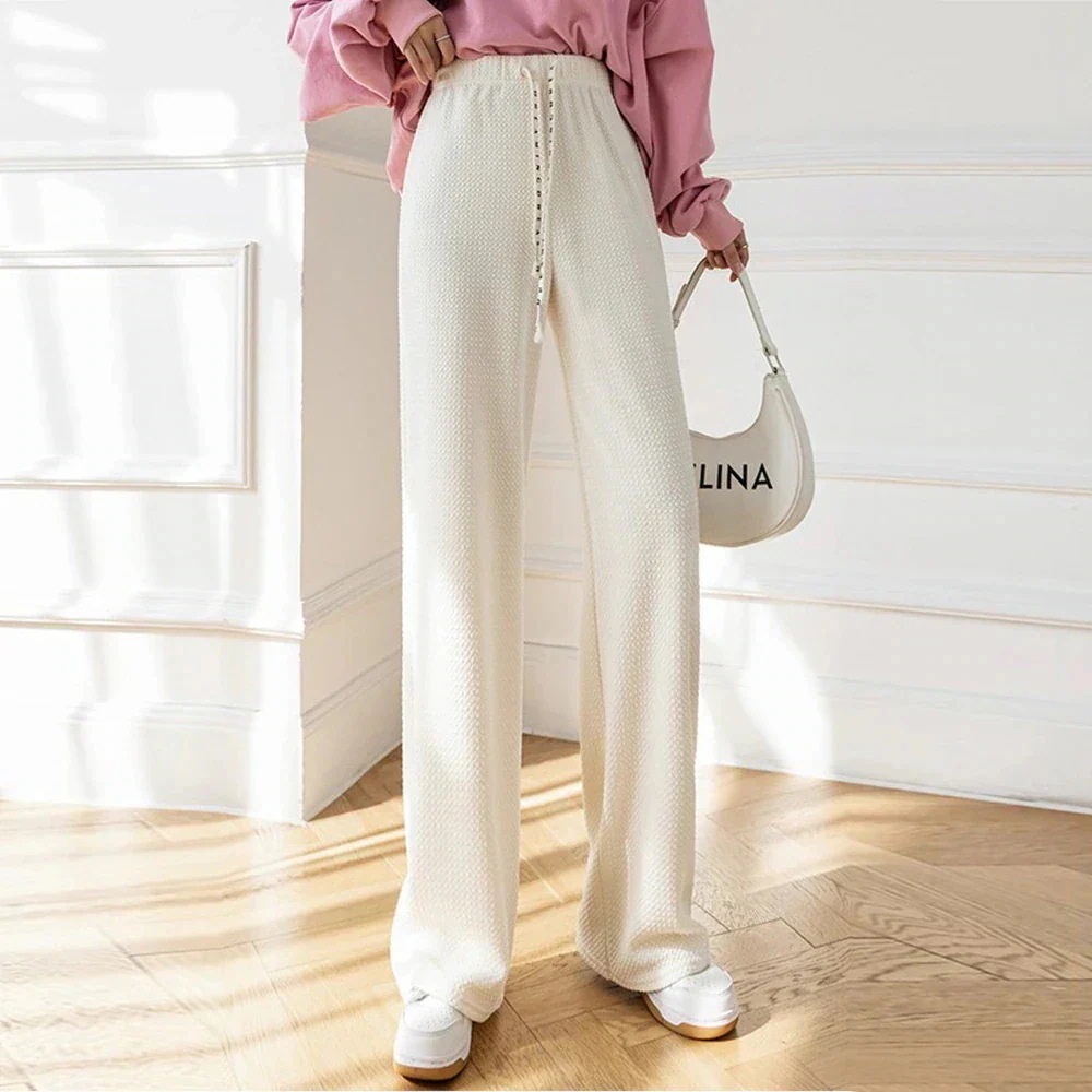 さらてろ ワイドパンツ パンツ ポケット付きタイプ登場 レディース 凸凹 エンボス ジャガード ワンマイルウェア 部屋着 ゆったり リラックス ワイド ウエストゴム カジュアル 韓国 体型カバー