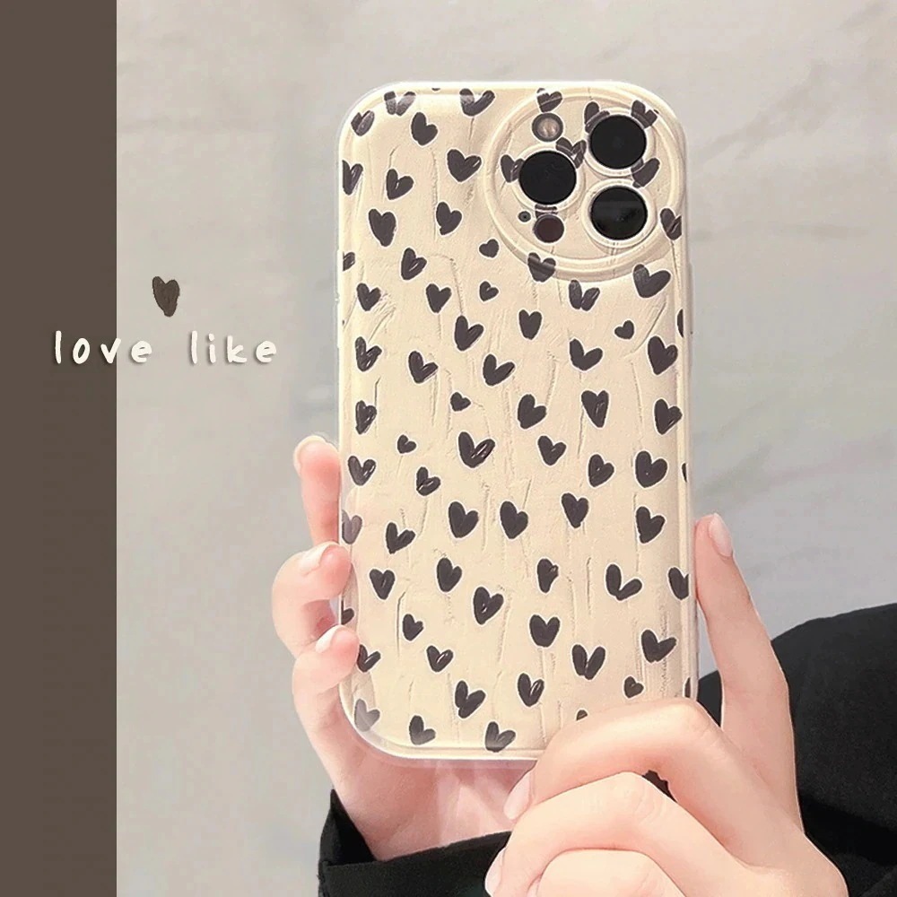 ビンテージ油絵 小さいラブハートiphone13pro max Apple 12 携帯電話ケース 11 ミルクコーヒーR エアクッション 14