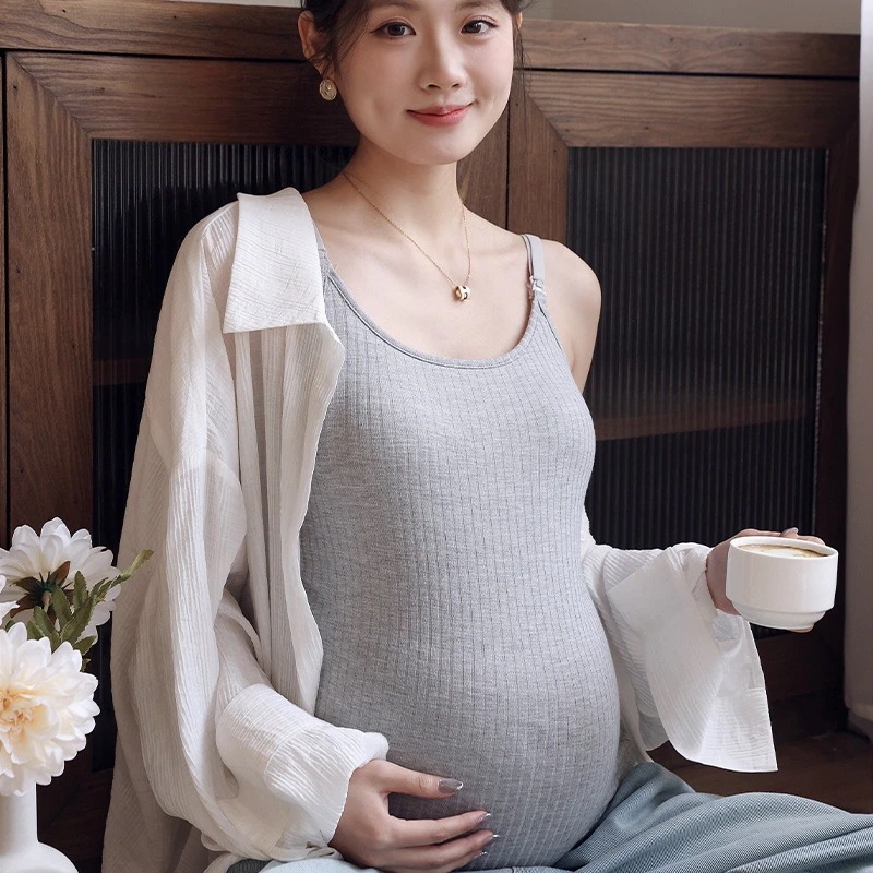 授乳キャミソール カップ一体型 授乳ブラ マタニティ 授乳 妊婦 ブラトップ 産前 産後 パッド付き カップ インナー キャミ タンクトップ 下着 綿 ストライプリブ シンプル 機能性 肌着