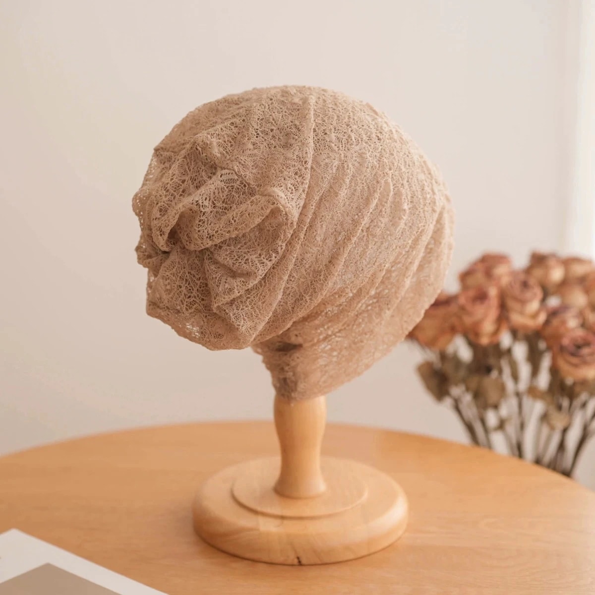 新作レース付きボンボン帽 レディース 和風スカーフ・ヘアバンド 薄手ニット 透かし編み アート系 何にでも合わせやすい 小顔効果 通気性トレンド感
