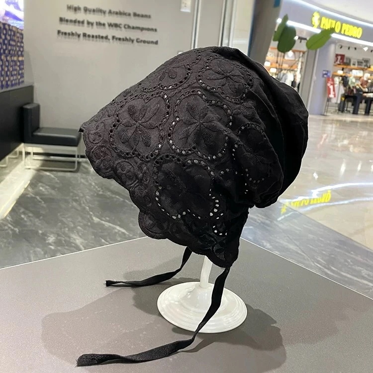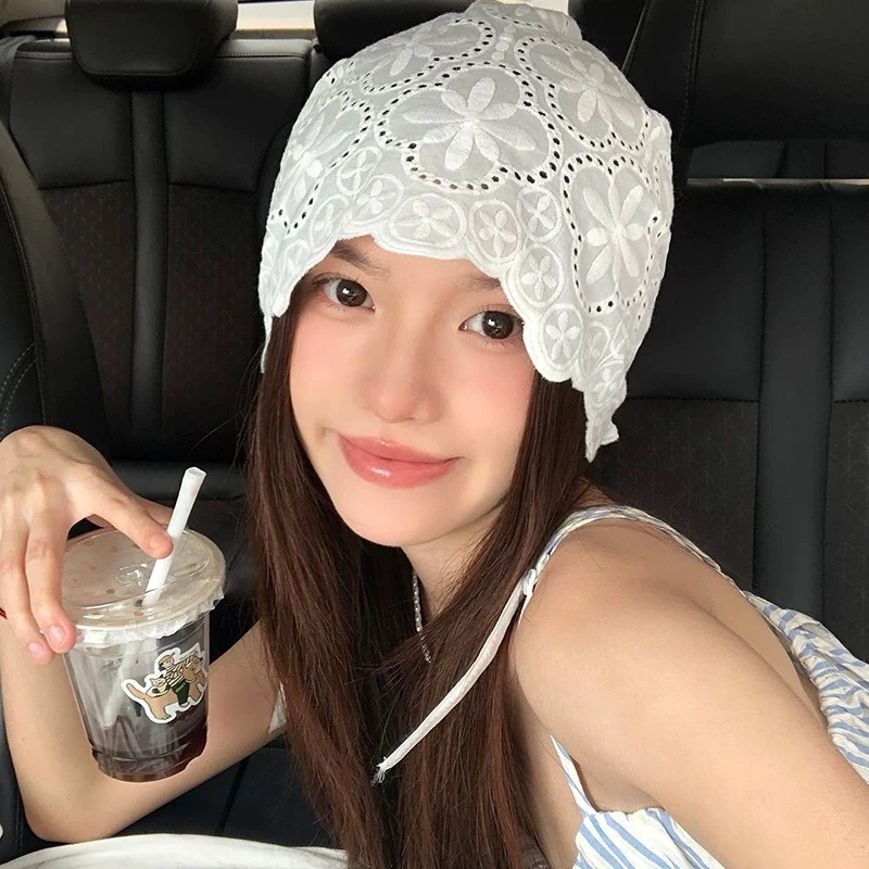レースの立体フラワー柄プリンセスハット 女性用 夏用 通気性薄手タイプ 透かし編みデザイン 韓国風 どんなスタイルにも合うエレガントな紐付きハット