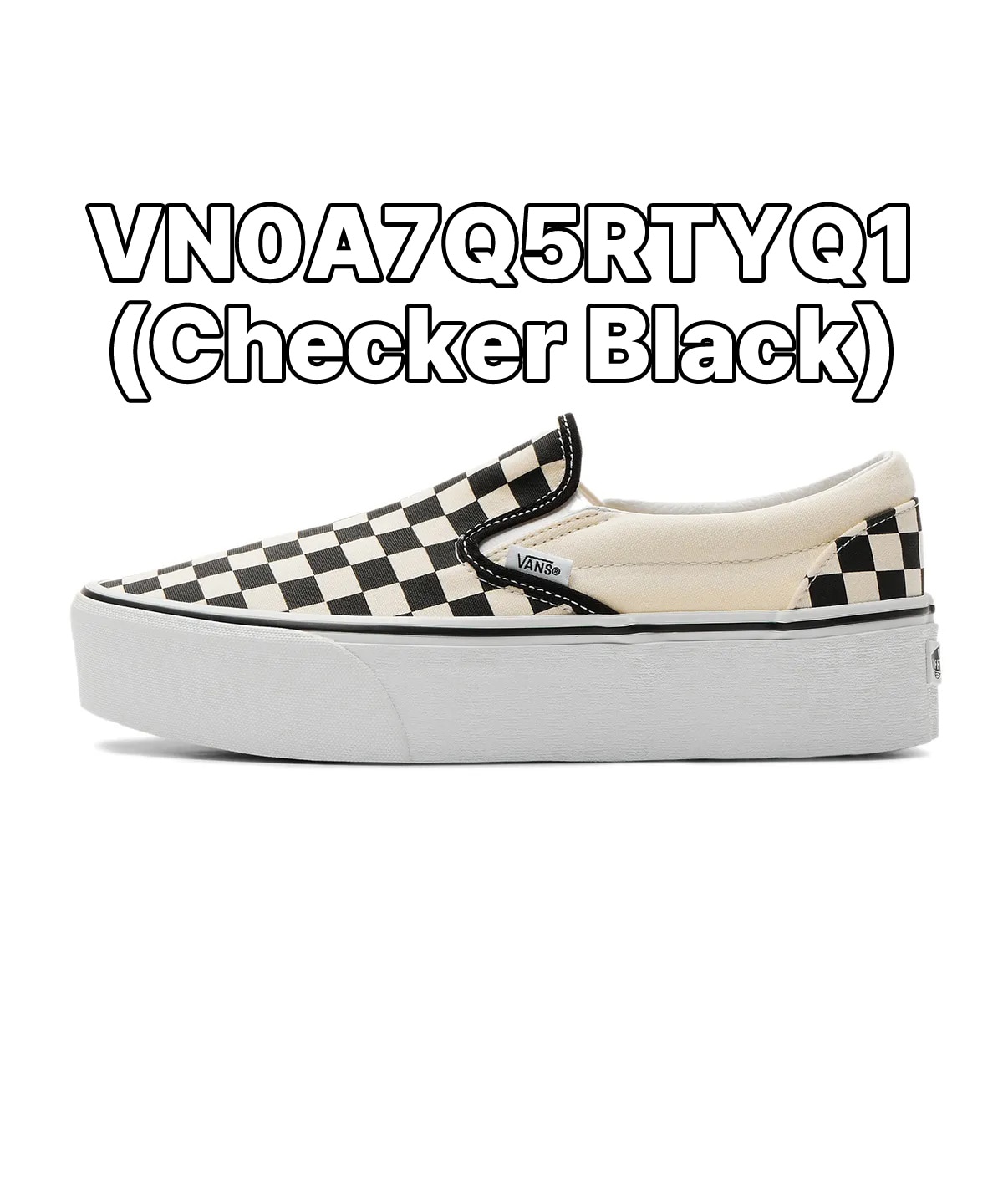 VANSVN0A7Q5RBMX1 VN0A7Q5RTYQ1 Classic Slip-on Stackform 厚底 スリッポン チェッカー 韓国っぽ 春夏 デイリー 普段履き お出かけ コーデ提案 デニム