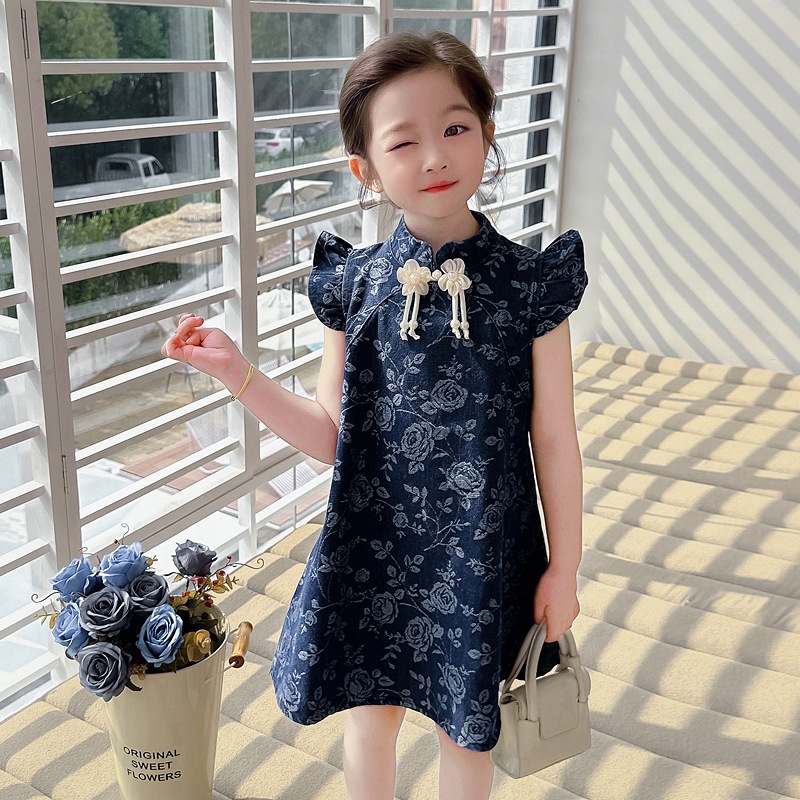 女児用チャイナドレス夏の新中華風デニムプリンセスドレス女児用唐装