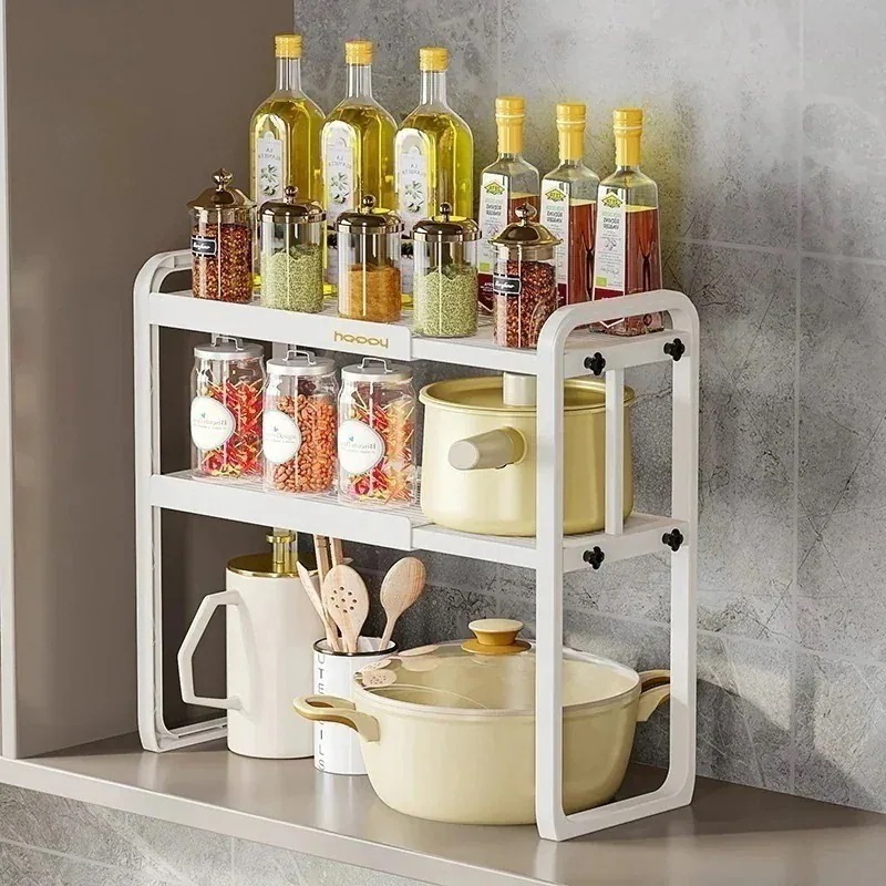 伸縮可能なキッチン棚電子レンジオーブン炊飯器棚家庭用二層テーブルデスクトップ収納スタンド