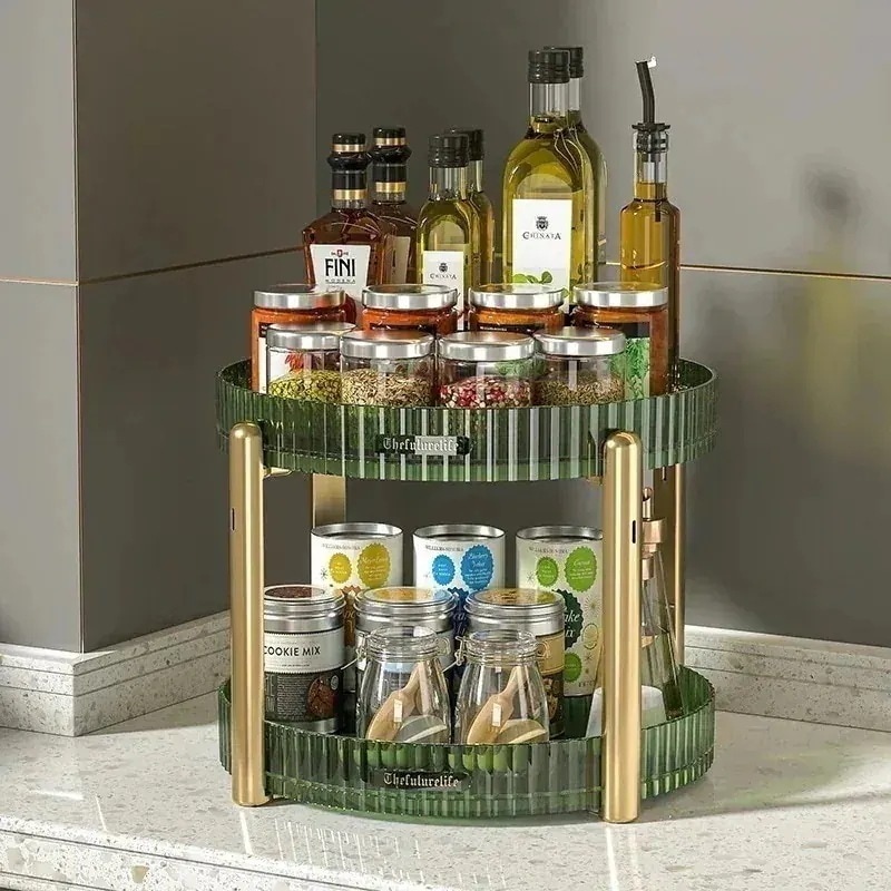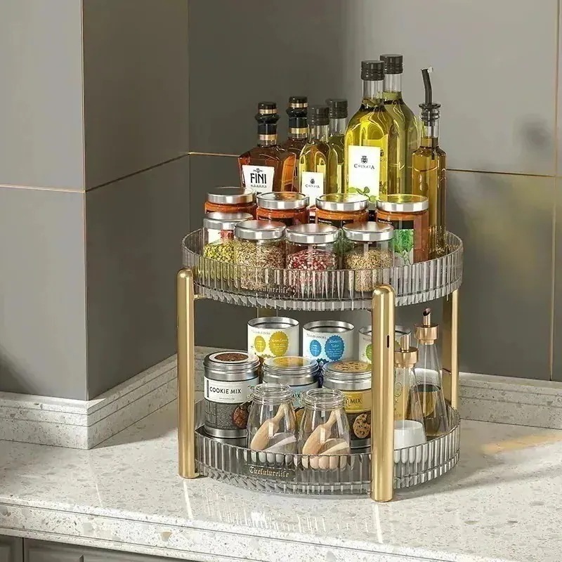 軽量贅沢-デスクスキンケア収納棚360度回転盤多層収納棚透明化粧品収納ボックス