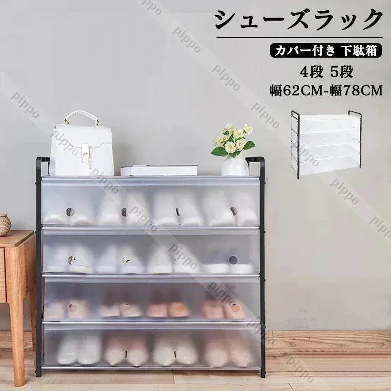 シューズラック 靴箱 下駄箱 スリム 防塵 カバー付き 組立簡単 玄関収納 省スペース 省スペース 棚 収納棚 4段 5段 防汚 防水 大容量 貸し屋