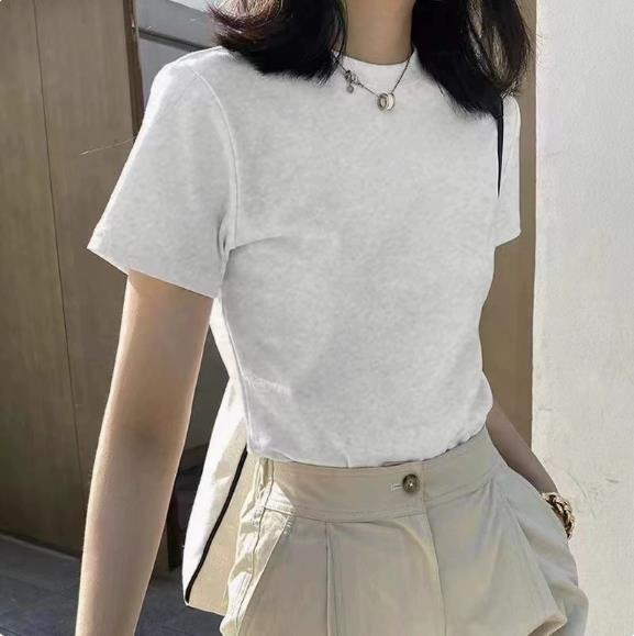 レディース 夏 半袖 Tシャツ 白 正肩 丸首 新品 大人気 インナー使い ブラウス トップス
