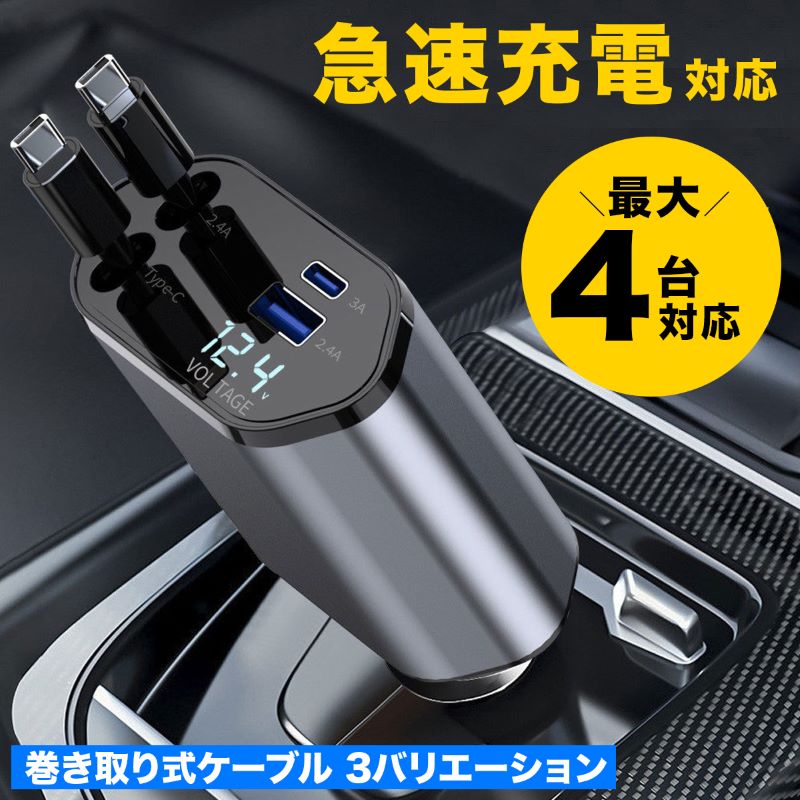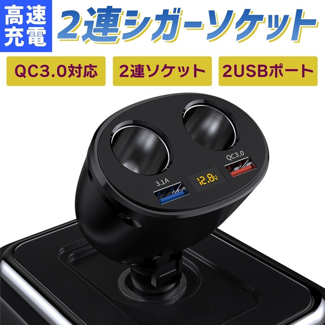 シガーソケット USB 増設 2連 車載充電器 QC3.0 4.8A カーチャージャー 高速 充電 二股 電源 トラック 12V 24V 車用 急速 2ポート 車
