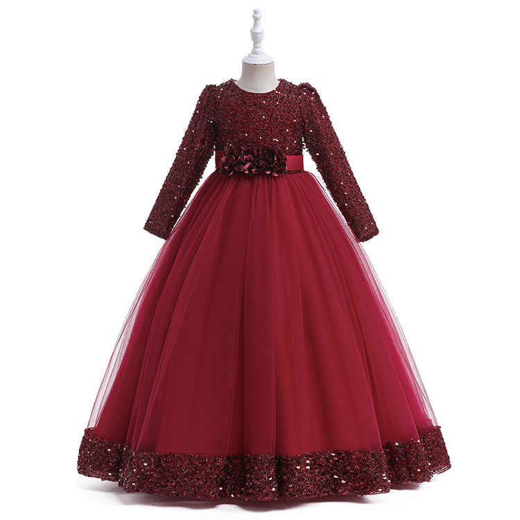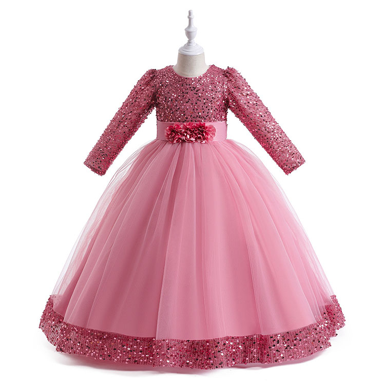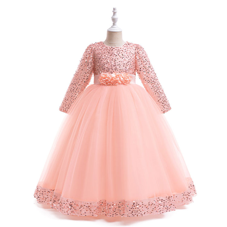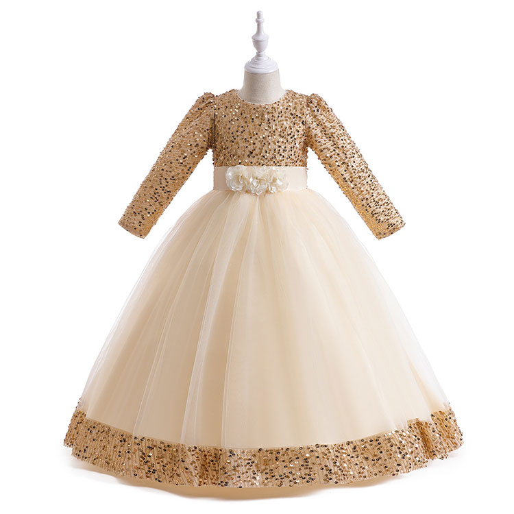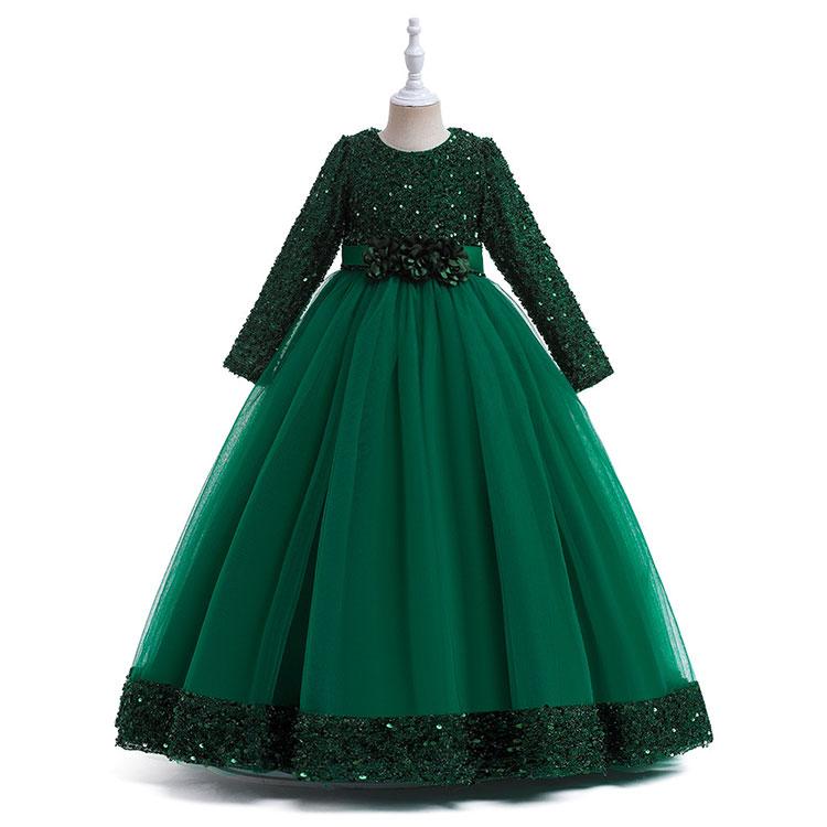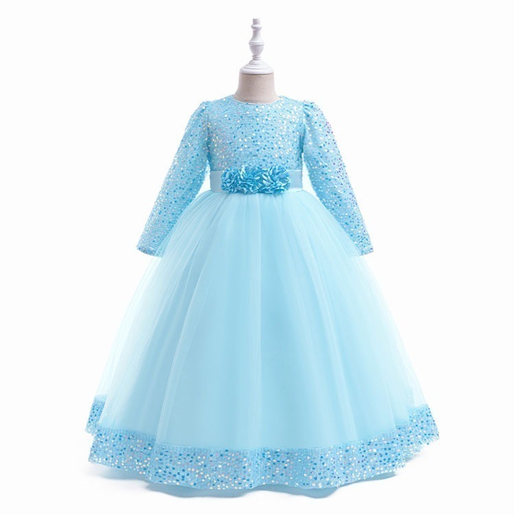 子供 ドレス ピアノ 発表会 フォーマルドレス 女の子 ロングドレス スパンコール 長袖 お姫様風 結婚式 演奏会 誕生日 パーティー 120 130 140 150 160 170