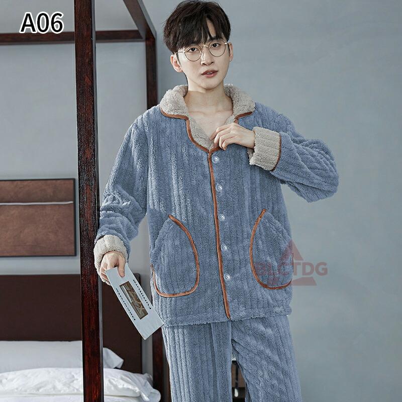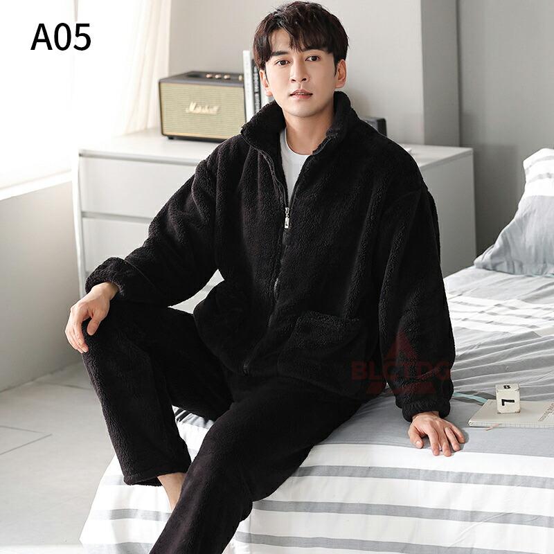 件パジャマ メンズ ルームウェア 冬用 暖かい 防寒対策 ナイトウェア 上下セット もこもこ 厚手 ふわふわ 防寒寝間着 部屋着 セットアップ 寝巻き あったか 部屋着
