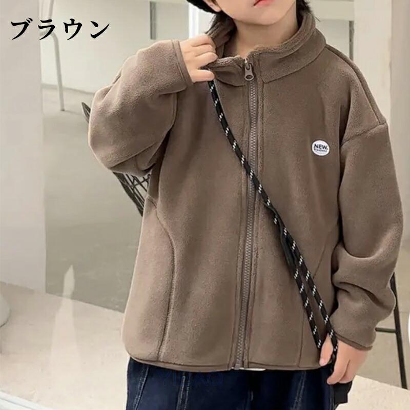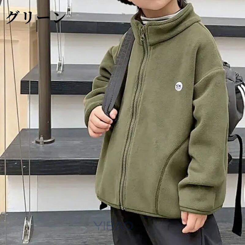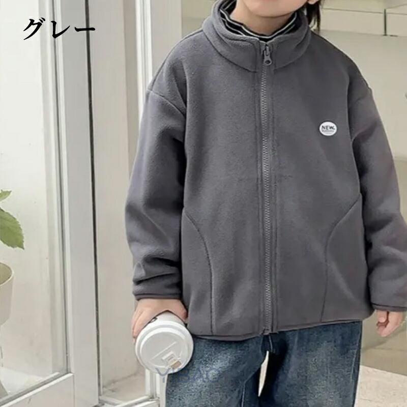 件こども フリース アウター フードなし ジャンパー ボア スタンドカラー ジャケット 子供 もこもこ 裏起毛 ファスナー 暖かい ジュニア かっこいい 軽い 秋