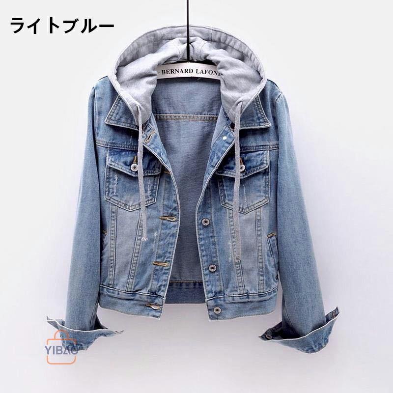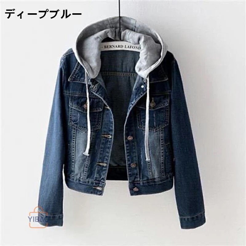 件デニムジャケット フード付き レディース デニム アウター コート ジージャン 長袖 カジュアル 女性 通勤 春 秋 きれいめ コート ジャケット デート 着痩せ
