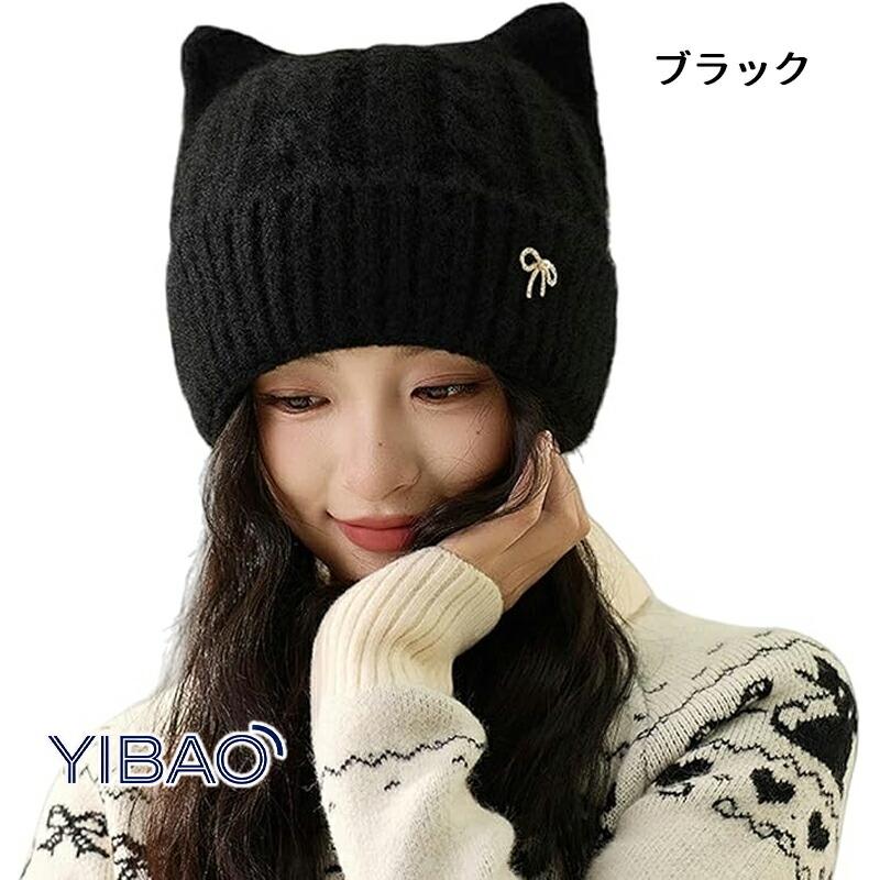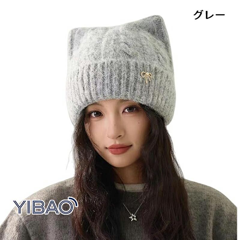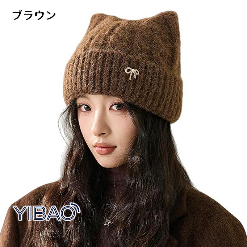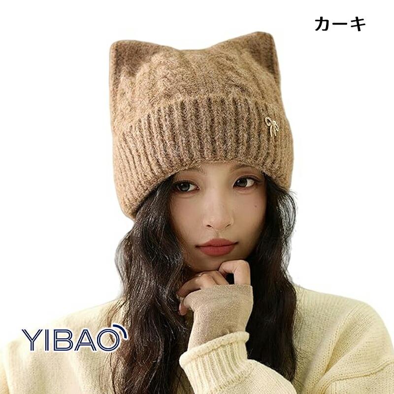 件ニット帽 レディース 秋冬 猫耳 帽子 防寒 暖かい 肌に優しい 厚手 ふわふわ ニット帽子 可愛い 小顔効果 伸縮性 柔らかい ビーニー帽 通勤 通学