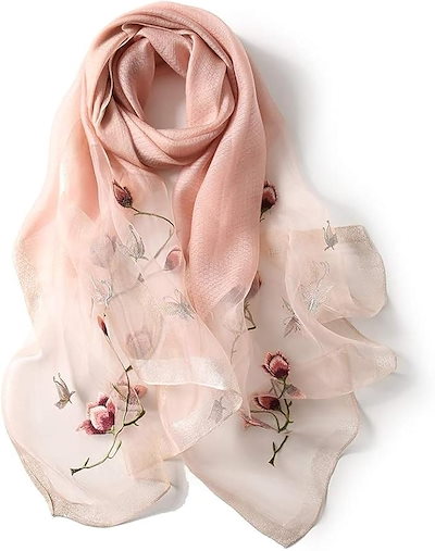 大判ストール レディース シルク 刺繍 フラワー柄 花 ショール 春夏 UV対策 プレゼント ギフト(ピンク)