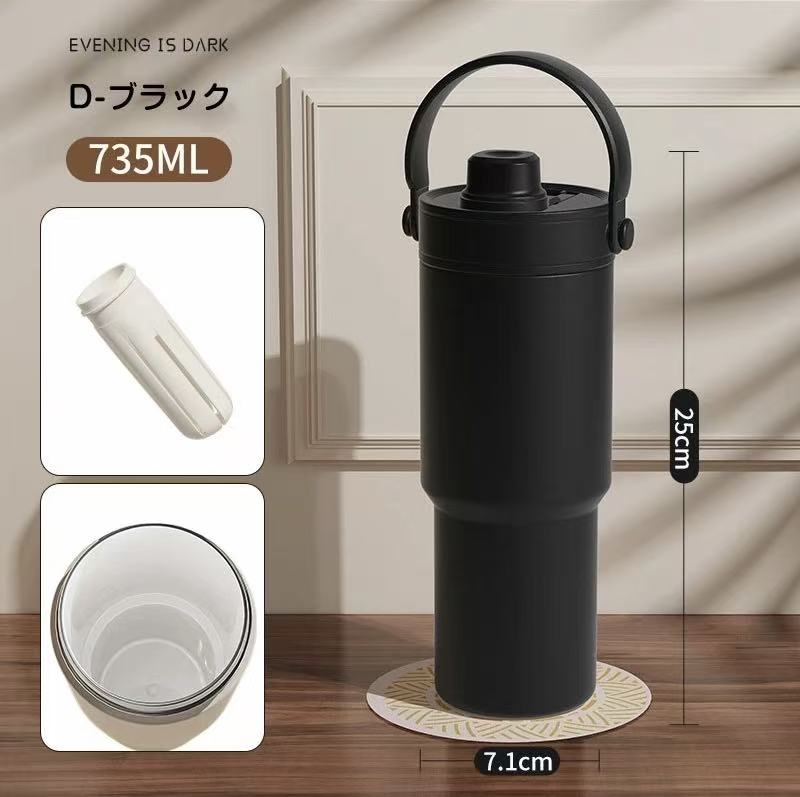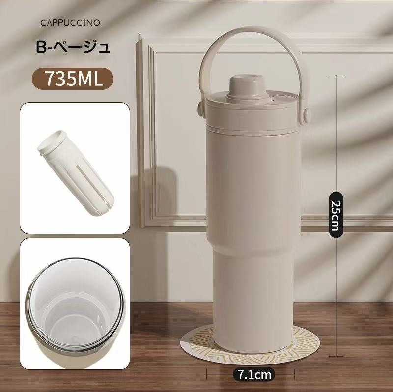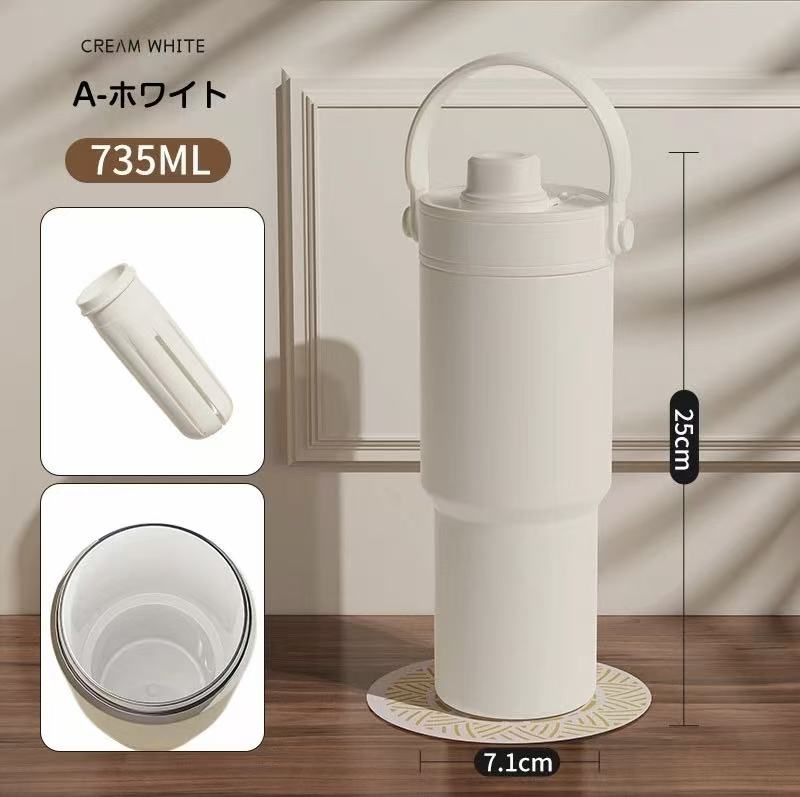 正規品タンブラー セラミック タンブラー ストロー付き 730ML 二重構造保温携帯 コーヒーカップ おしゃれ こぼれにくい水筒大容量 保冷耐熱直飲み 3Wayストロー付きタンブラー 蓋付き車内ギフト