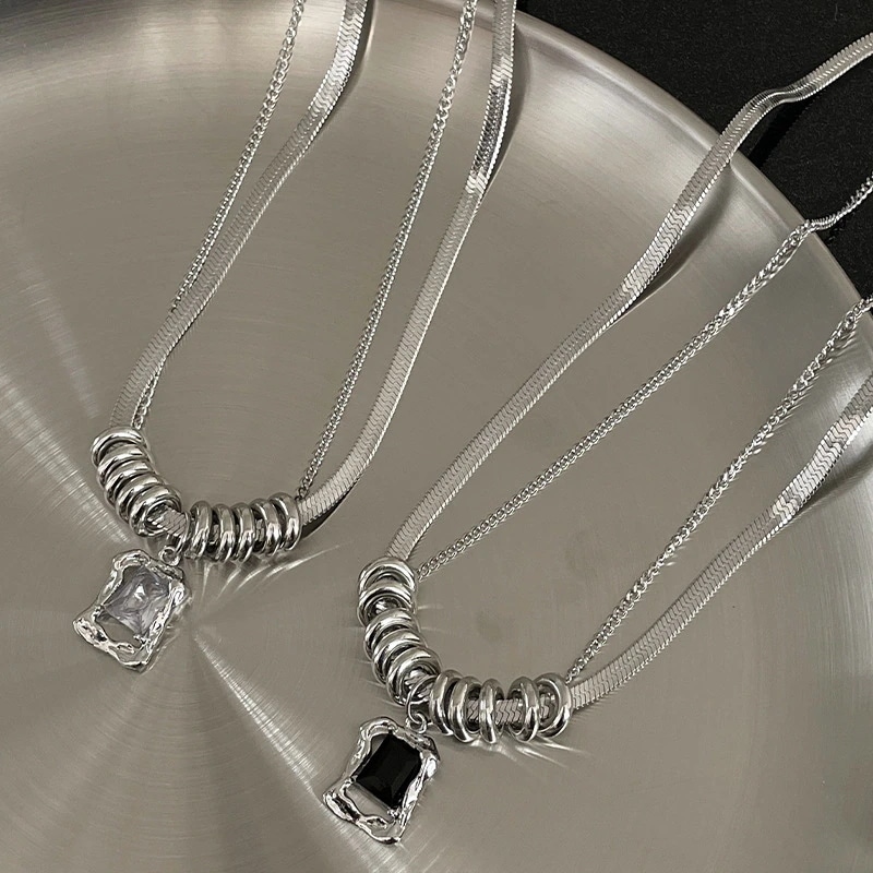ニッチなデザインの高級感あふれる宝石付きスネークチェーンチタン製スウェットチェーンメンズネックレス鎖骨チェーンヒップホップ風レディースセーターチェーン