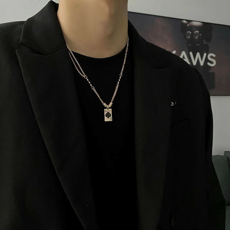 欧米風メタルトランプ スペードネックレス メンズ新作 ヒップホップ・ダンス用 鎖骨チェーン おしゃれでどんなスタイルにも合わせやすい