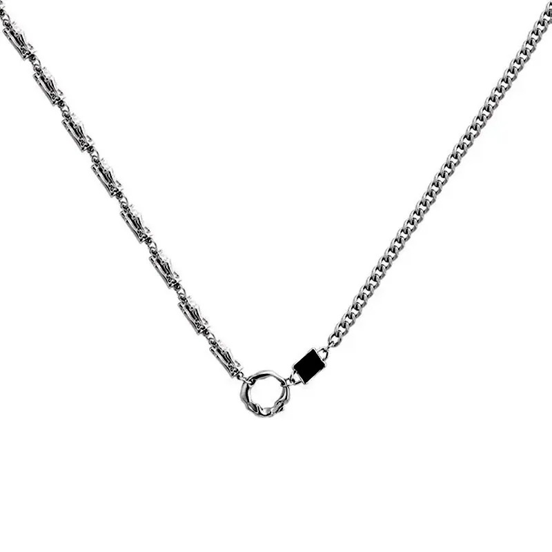 ニッチキューバ風ネックレス ヒップホップ風ブラックジェムネックレス トレンド感あふれる男性向け ストリート系 ニッチ ユニセックス 高級感あふれるスタイリッシュなチタン製鎖骨ネックレス