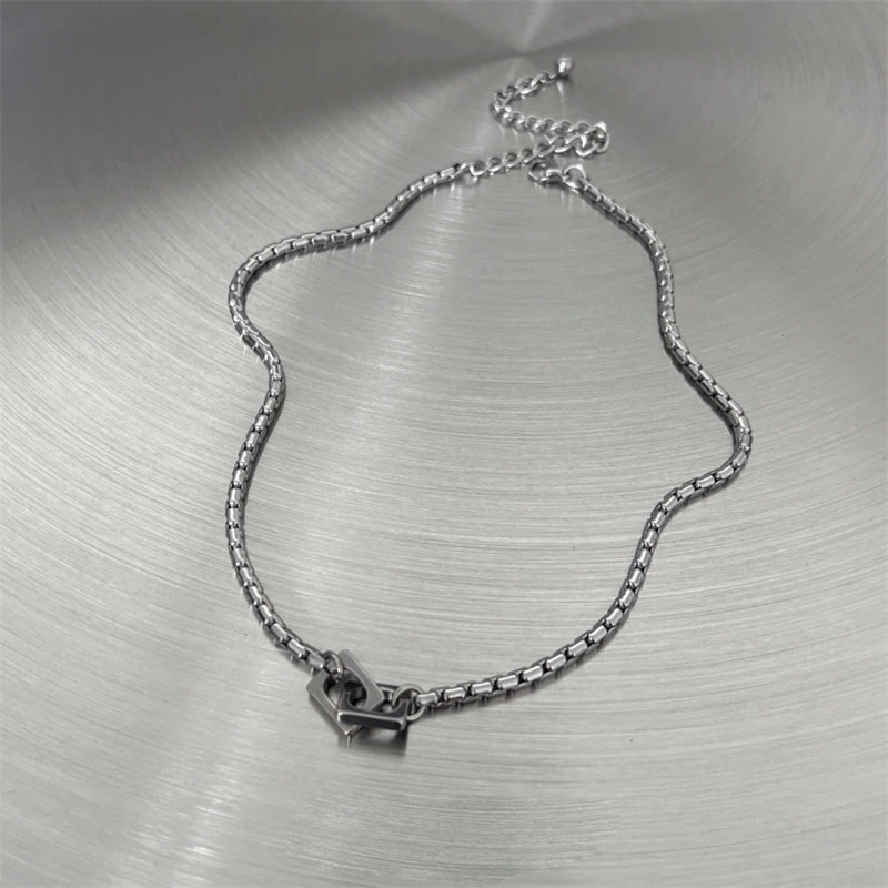 ミニマルなスクエアリングが連なるネックレス メンズ向けトレンド・チタン製・色褪せなし・ニッチで万能・レトロで高級感あふれる鎖骨ネックレス
