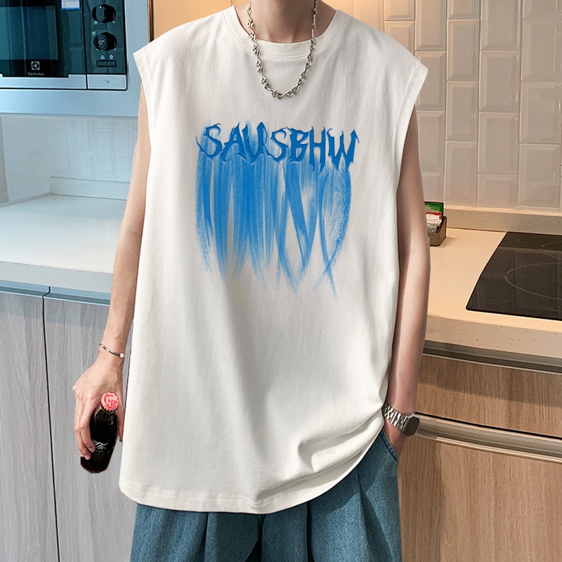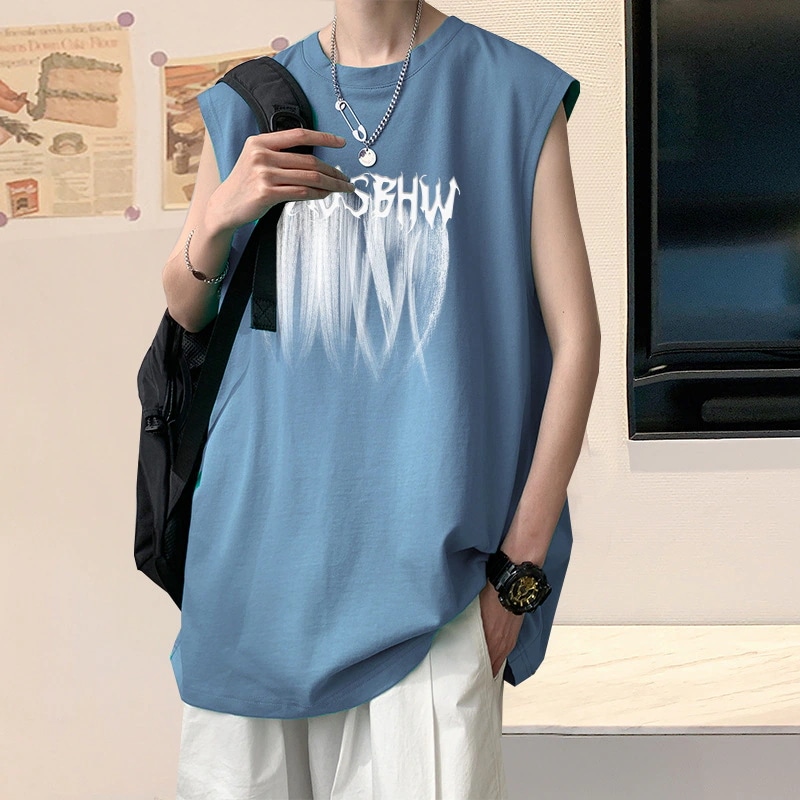 純綿ベスト メンズ 夏用ルーズフィット トレーニング用ノースリーブTシャツ メンズ半袖