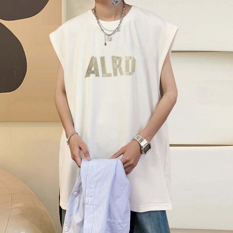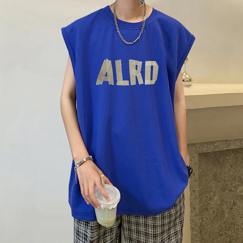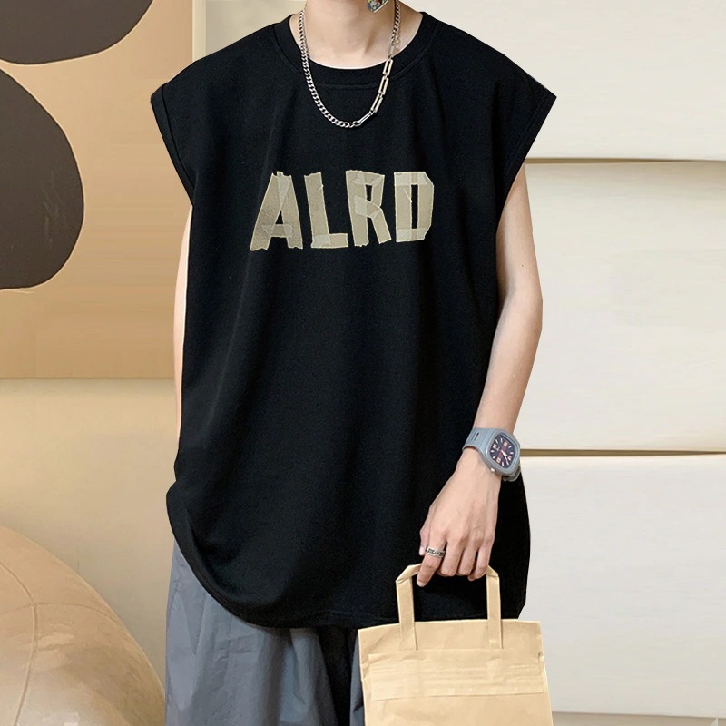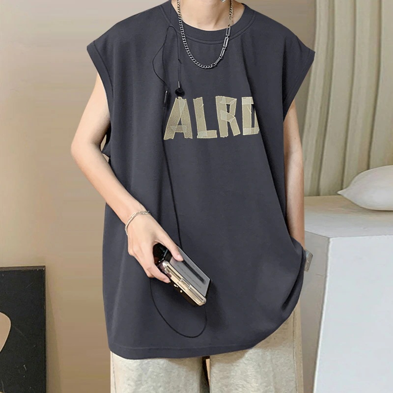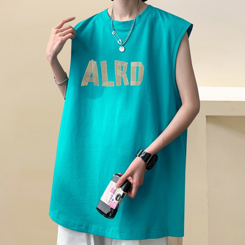 メンズ夏用ベスト シンプルでゆったりとしたコットン製タンクトップ 日本風ノースリーブTシャツ