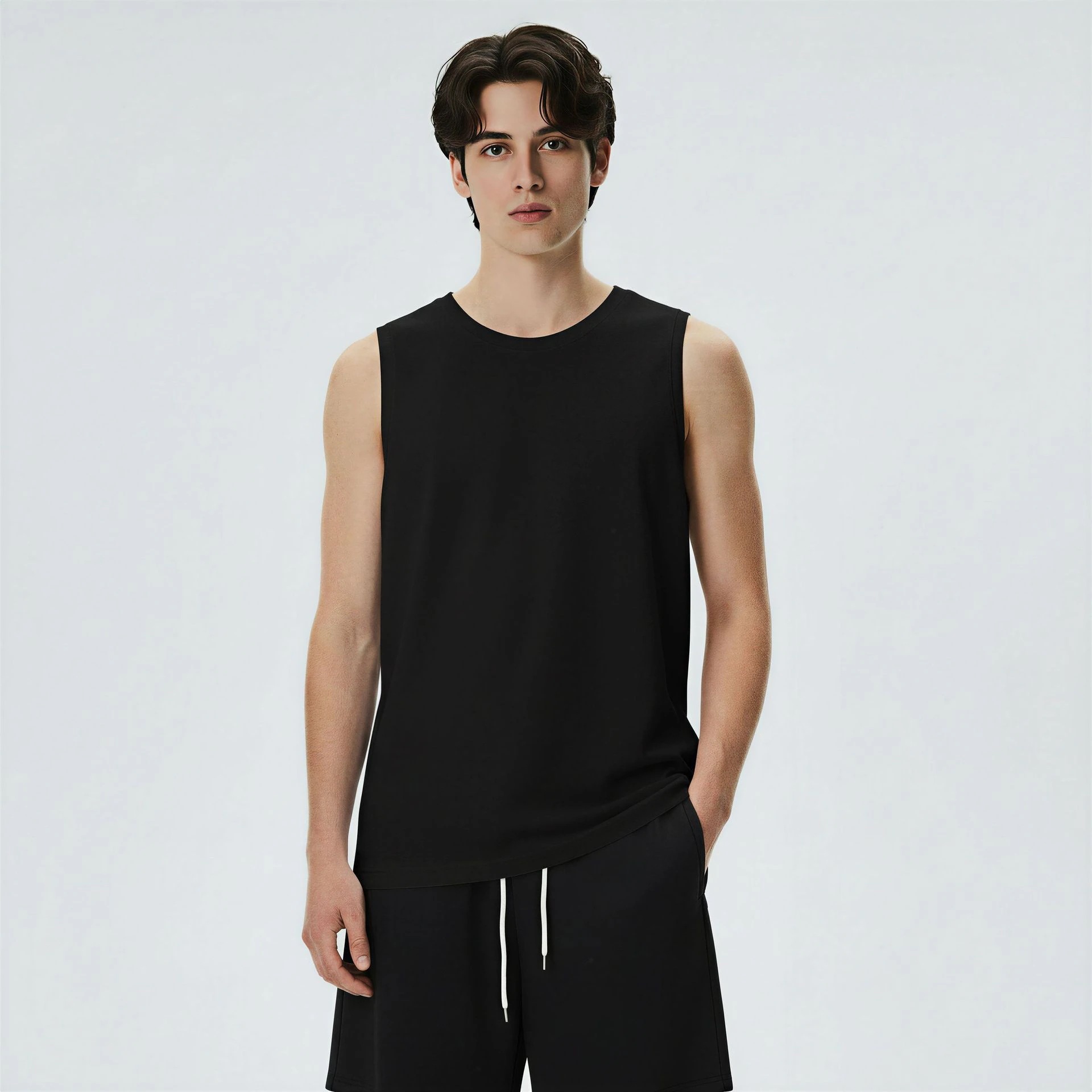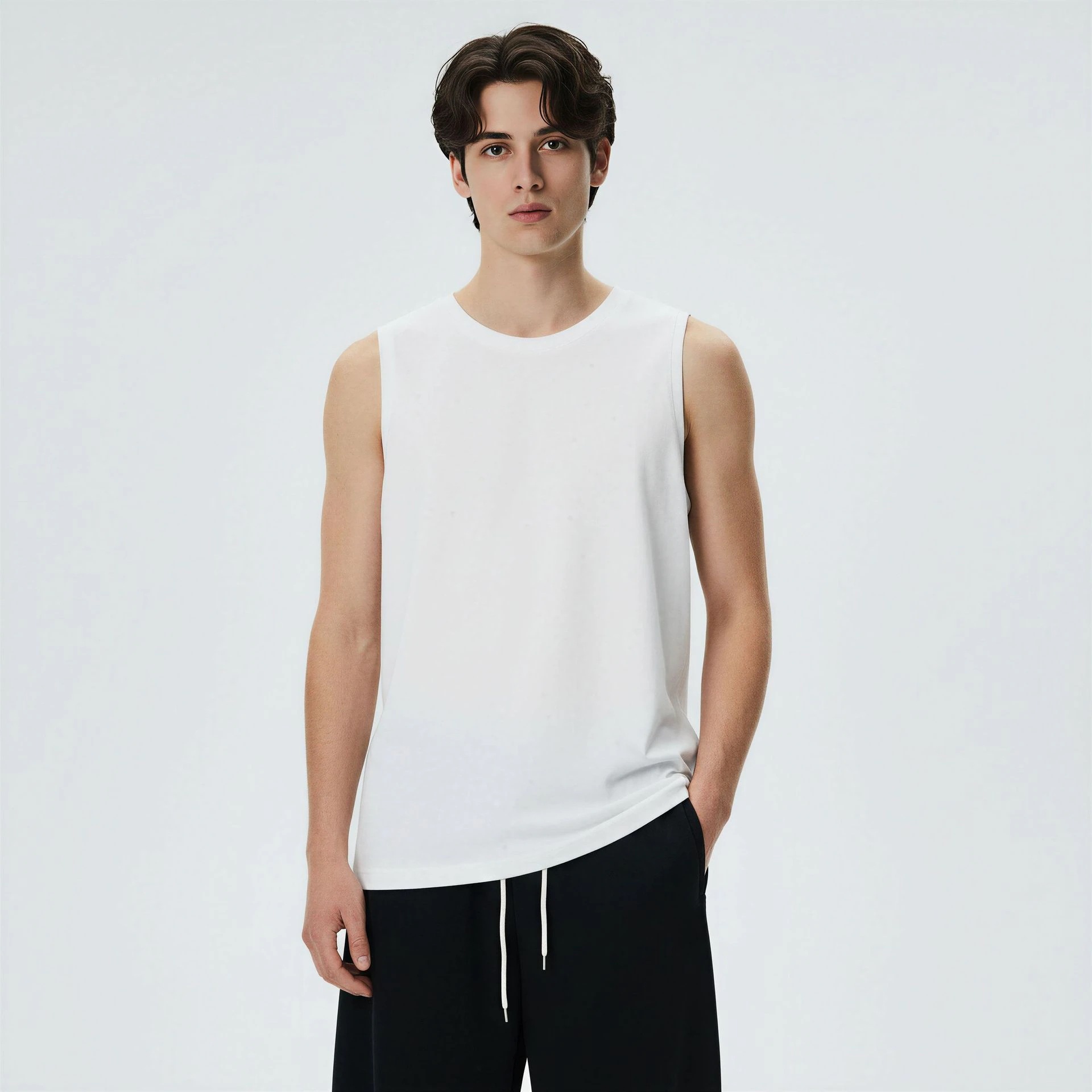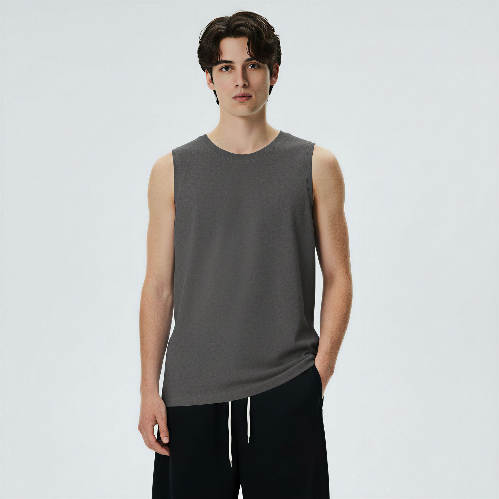 綿通気性 スポーツフィットネス用ベスト メンズ 夏用 無地 インナー 大きめサイズ ゆったりフィット 厚手 ノースリーブTシャツ
